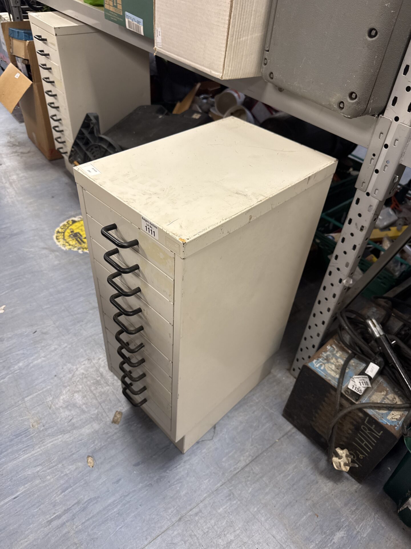 This is a robust metal filing cabinet, designed for storing paperwork and office essentials. Its industrial style suggests it was built for heavy use, and the single drawer offers ample space for files and documents. The cabinet’s construction indicates a focus on durability and practicality, making it a functional addition to any office or workspace.