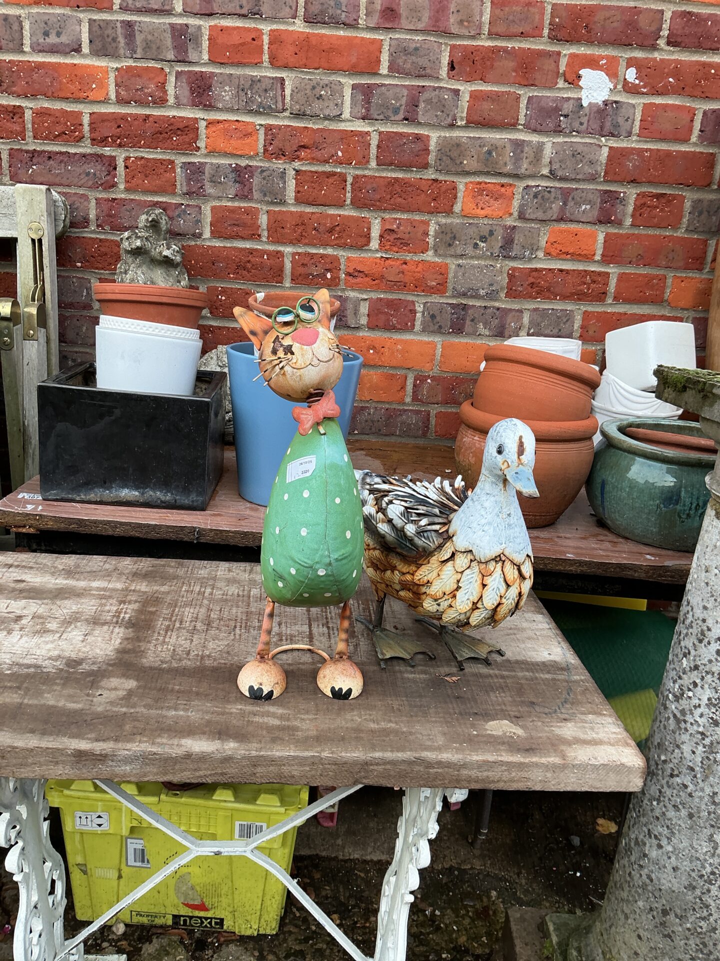 This charming metal garden duck is a delightful addition to any outdoor space. Crafted from metal, it features a whimsical design with a textured body and elongated legs. The duck’s painted finish adds a touch of colour and character, making it a standout piece in a garden, patio, or lawn setting.