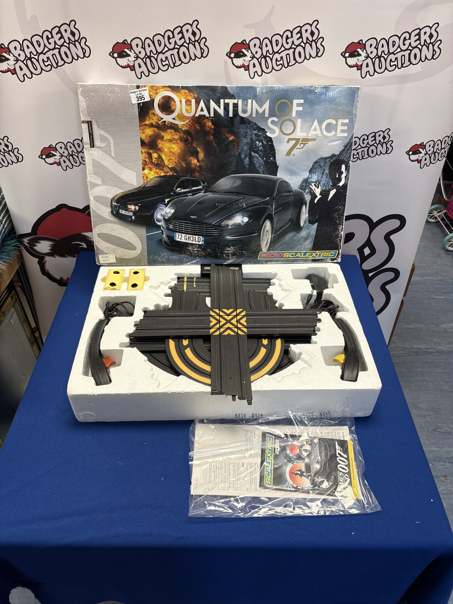 This is a MicroScalextric track set based on the James Bond film *Quantum of Solace*. The set includes sections of track to create a racing circuit, and appears to include two miniature vehicles themed around the film. It’s designed for small-scale racing fun, offering a compact and portable racing experience for collectors and enthusiasts.