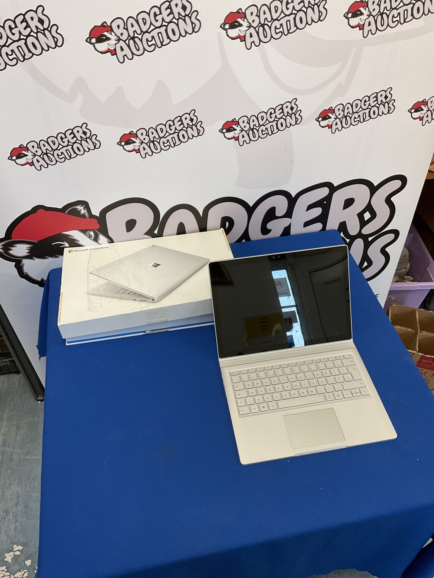 This is a Microsoft Surface Book laptop, a convertible device known for its innovative design and versatility. Featuring a detachable screen, it functions as both a traditional laptop and a standalone tablet. This model boasts 256GB of storage, offering ample space for files and applications. Its sleek, modern aesthetic and powerful performance make it a desirable device for both work and entertainment.