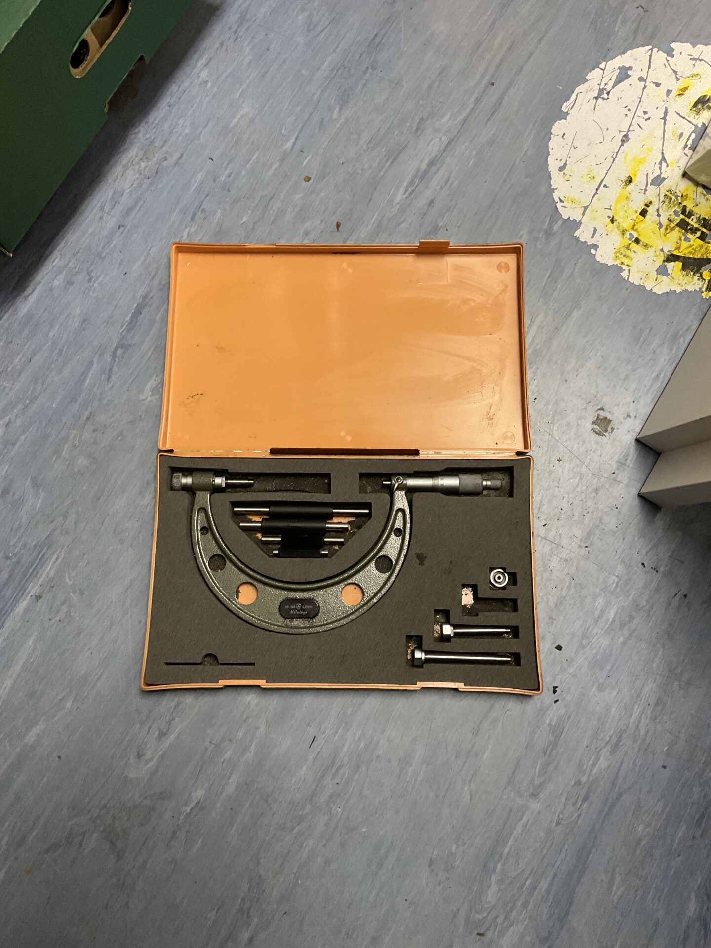This Mitutoyo micrometer appears to be a vintage example, showing signs consistent with age and use. It may be of interest to collectors of vintage tools, machinists, or anyone requiring a precision measuring instrument. The micrometer’s condition and originality should be carefully assessed by potential buyers.