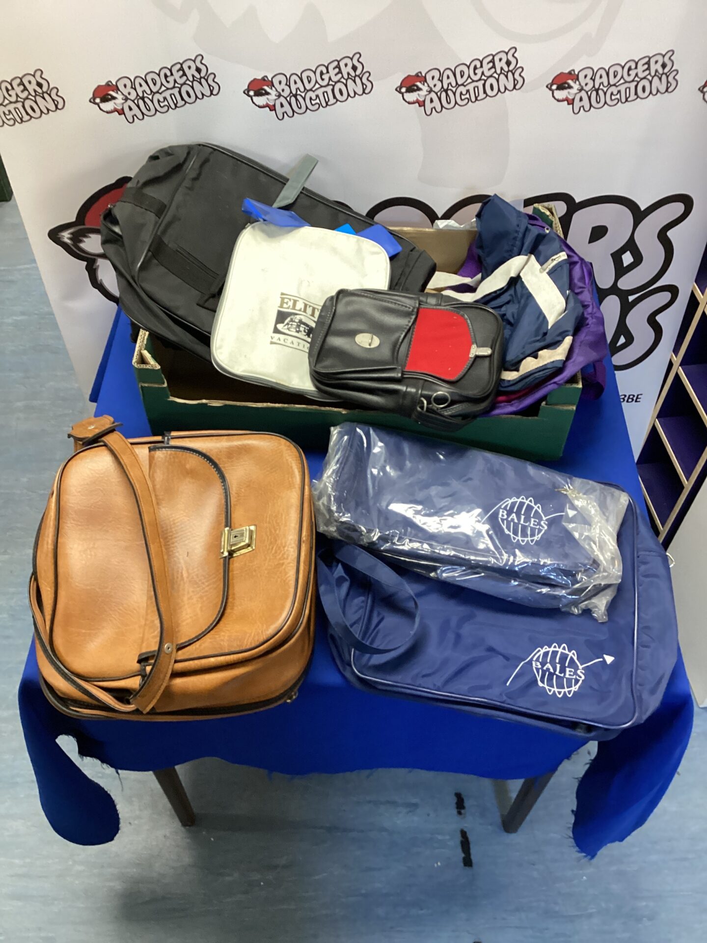 The bags present varying degrees of wear and tear, consistent with their age and potential use. Some may exhibit scuffs, fading, or minor damage, while others appear to be in better condition. This lot would appeal to collectors of vintage accessories, those interested in repurposing materials, or individuals seeking unique additions to their wardrobe.