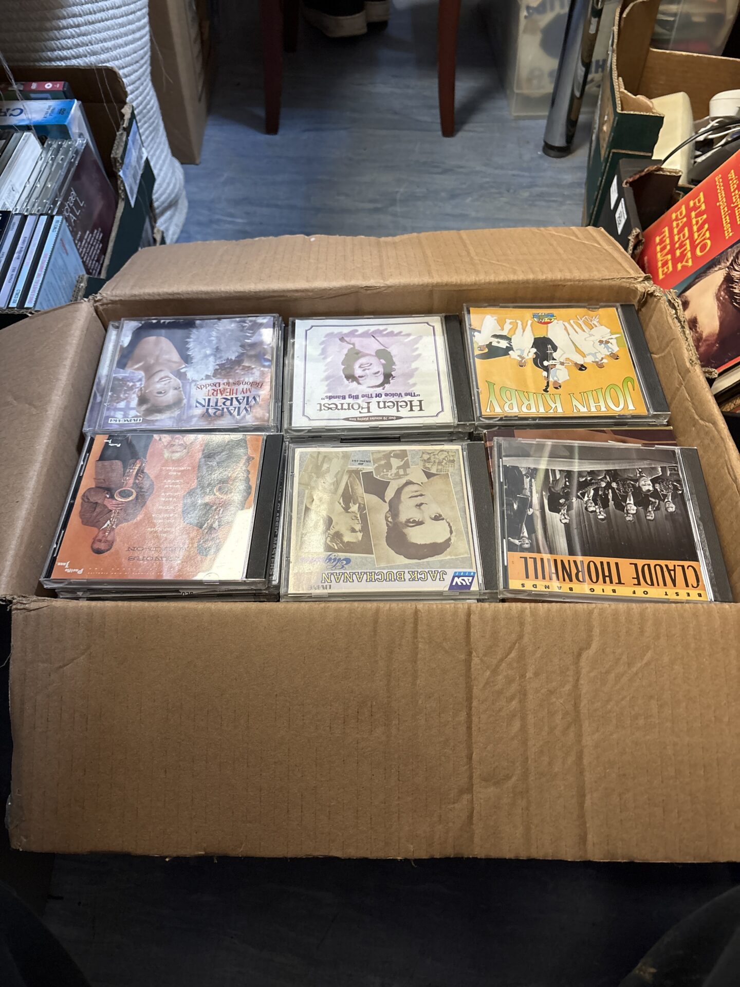 This lot contains a mixed collection of compact discs, offering a variety of musical genres and artists. The CDs are housed in a cardboard box and are offered as viewed. A great opportunity for collectors or those looking to expand their music library.
