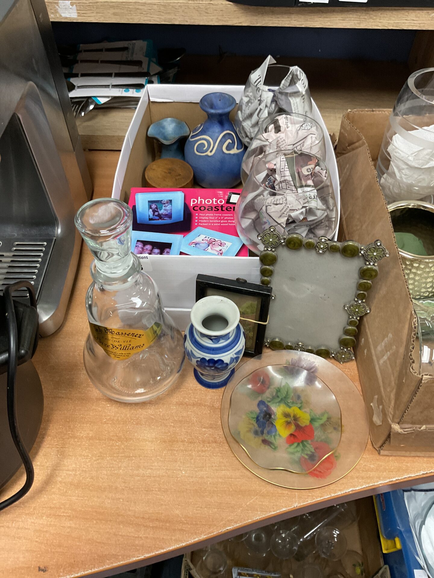 This mixed lot comprises a selection of china and glassware, including pieces in classic blue and white designs. The collection features wine glasses and a decanter, suggesting a focus on dining and entertaining. The variety of pieces indicates a potential for display or use, offering a charming addition to any home.