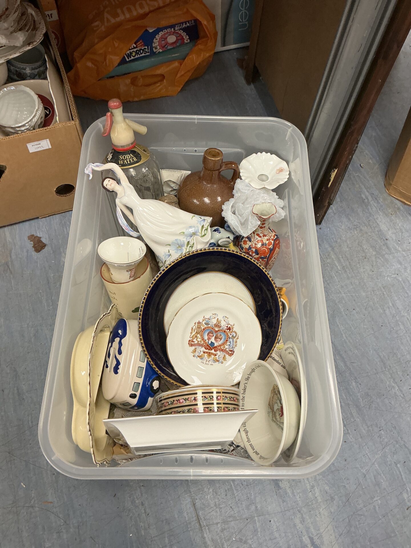 This is a mixed lot of vintage and antique china and ceramic items. The collection includes a variety of pieces, such as decorative plates, figurines, and potentially tea or tableware components. The lot presents a diverse range of styles and patterns, suggesting a compilation from various eras and manufacturers.