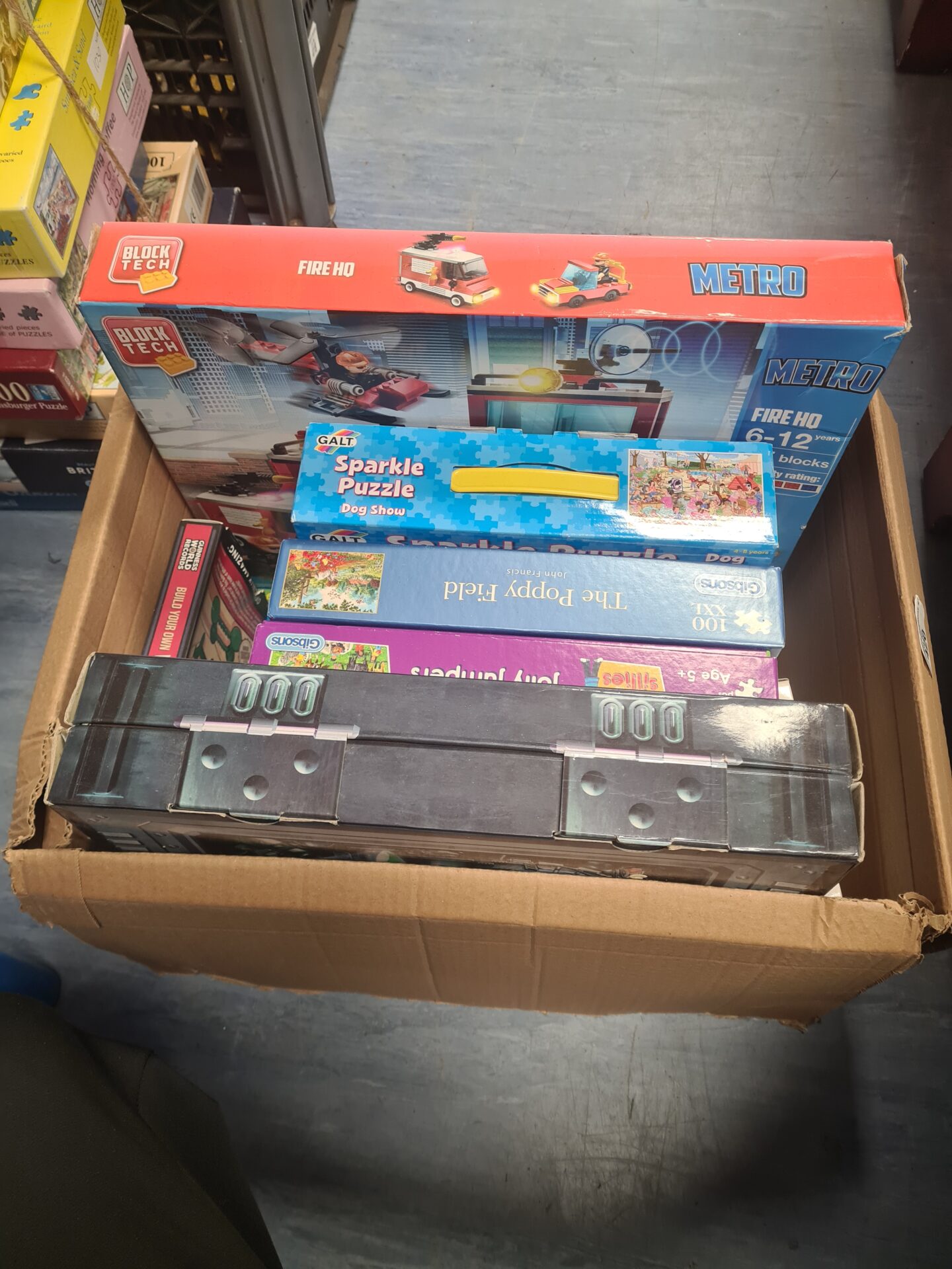 This lot comprises a collection of various games and puzzles, including a Block Tech puzzle. The assortment appears to cater to a range of ages and interests, offering a diverse selection for entertainment. The lot includes a variety of puzzle types and game formats, making it a versatile collection for family fun or individual enjoyment.