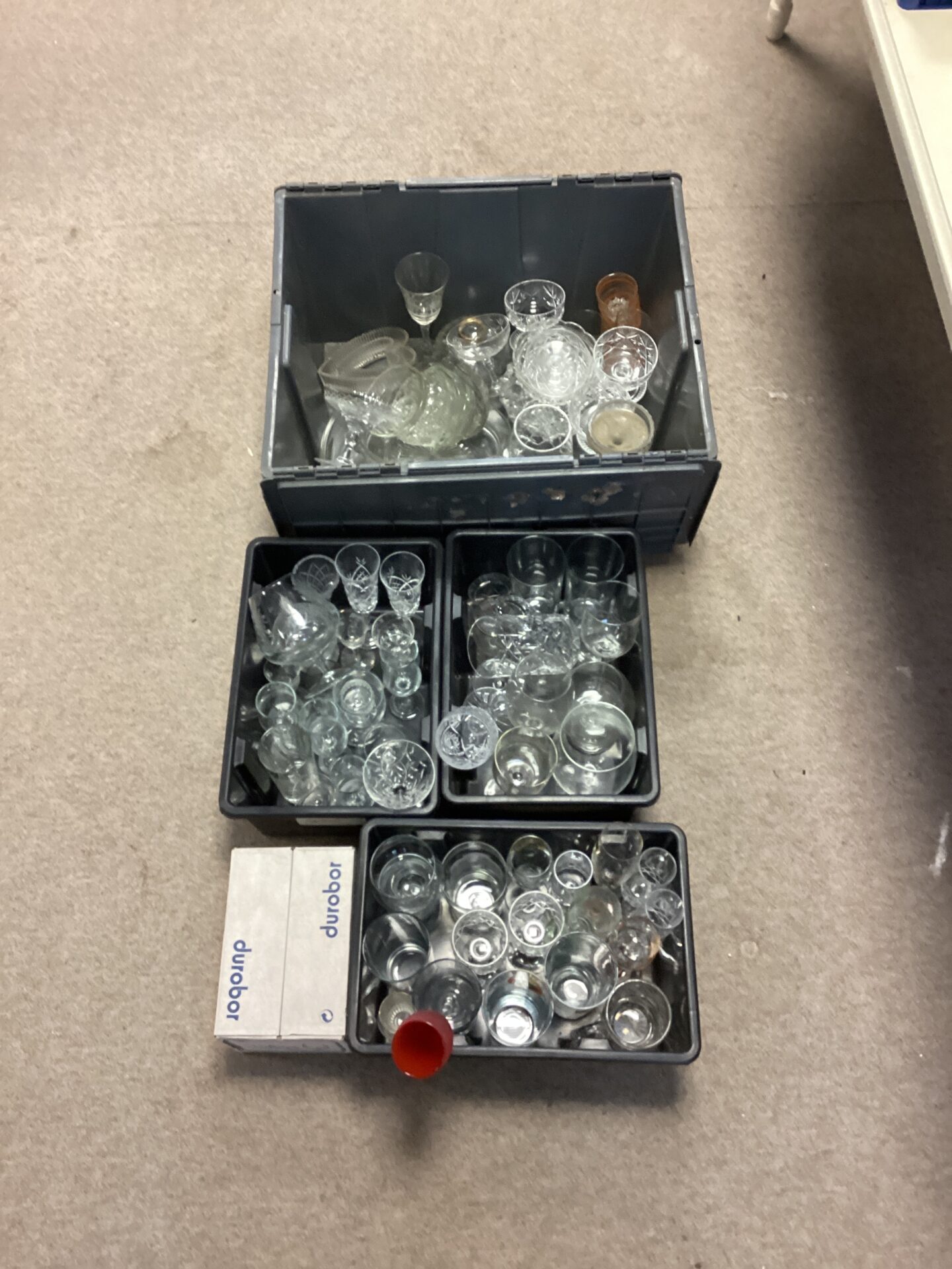 This lot comprises a collection of mixed glassware, including wine glasses, smaller cherry glasses, and various bowls – both dessert and general-purpose. The collection appears to be a varied assortment, suggesting use across different dining and entertaining occasions. The styles range, indicating a possible accumulation over time, offering a diverse selection for a collector or user.