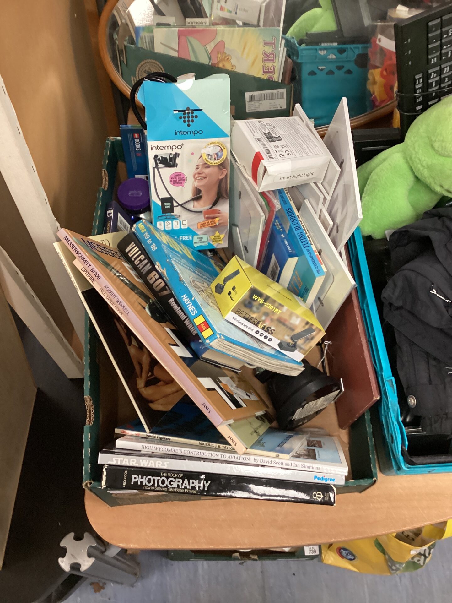 This mixed lot features an Intempo hands-free neck mount, a wireless speaker, a smart night light, and a selection of books. Perfect for collectors or those seeking affordable electronics and reading material, this lot offers a diverse range of items. No functionality is guaranteed, and items are sold as seen.
