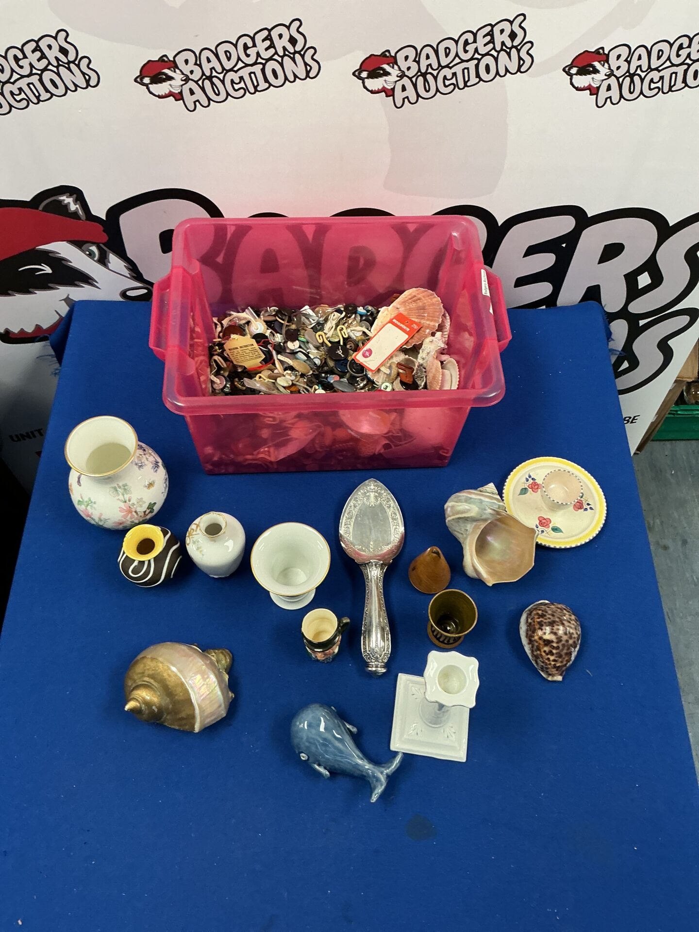 This lot comprises a diverse collection of vintage buttons, natural shells, and various small curios. The buttons exhibit a range of materials, sizes, and designs, suggesting they were accumulated over a considerable period. The shells represent different species and sizes, and the additional curios add an eclectic touch to the collection, making it appealing to crafters, collectors, and those interested in vintage ephemera.