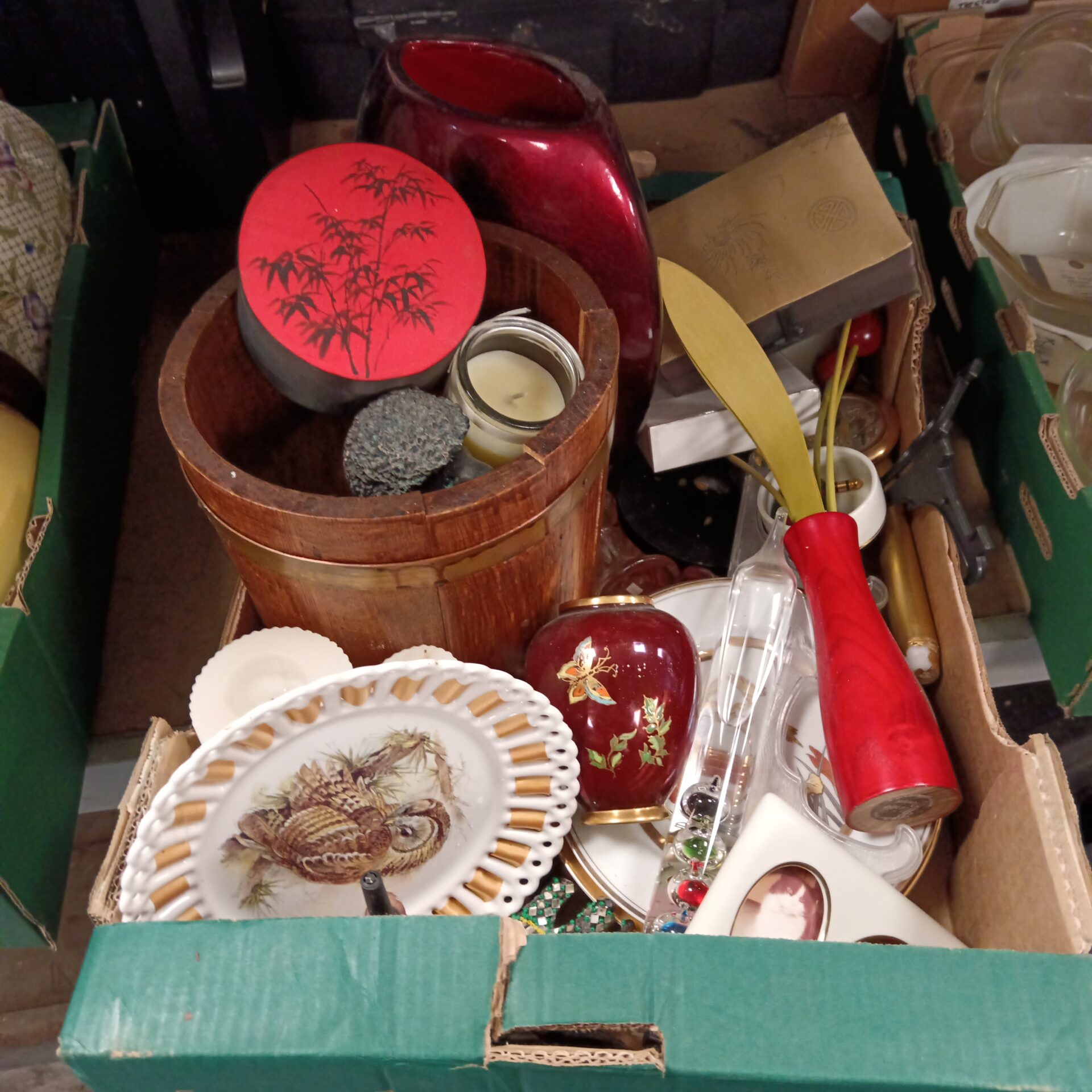 This mixed lot features a charming collection of vintage curios and decorative items. A small wooden barrel planter is included, alongside a vibrant Carlton Ware vase, known for its colourful glazes and distinctive designs. The lot also contains other smaller decorative pieces, offering a diverse range of styles and textures for the collector or enthusiast.