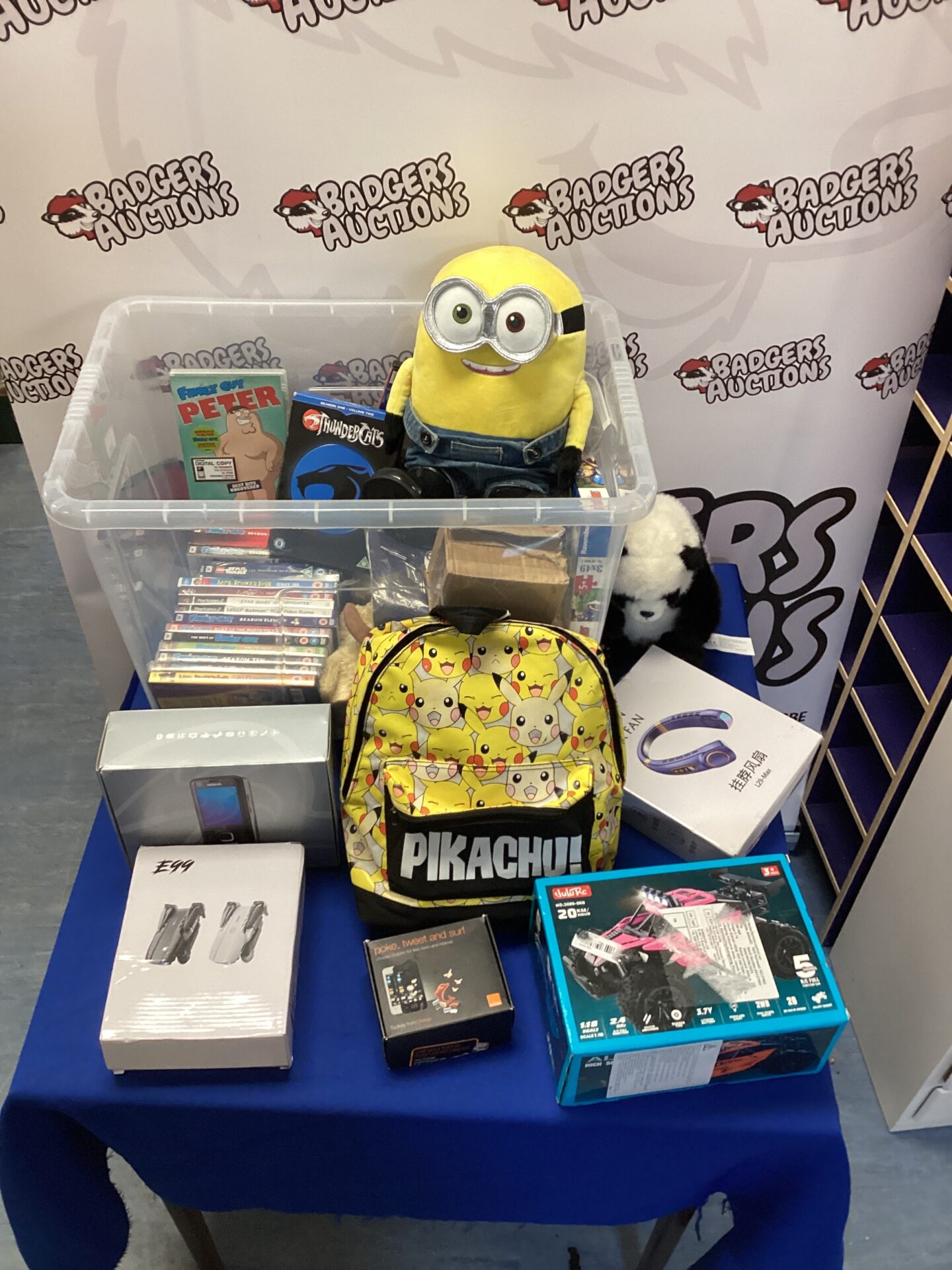 This mixed lot contains a selection of items including Family Guy DVDs, a Nokia mobile phone, a Pikachu themed rucksack, and an RC buggy. The DVDs offer a range of entertainment, while the Nokia phone represents a classic era of mobile technology. The Pikachu rucksack adds a touch of fun, and the RC buggy provides potential for remote-controlled enjoyment.