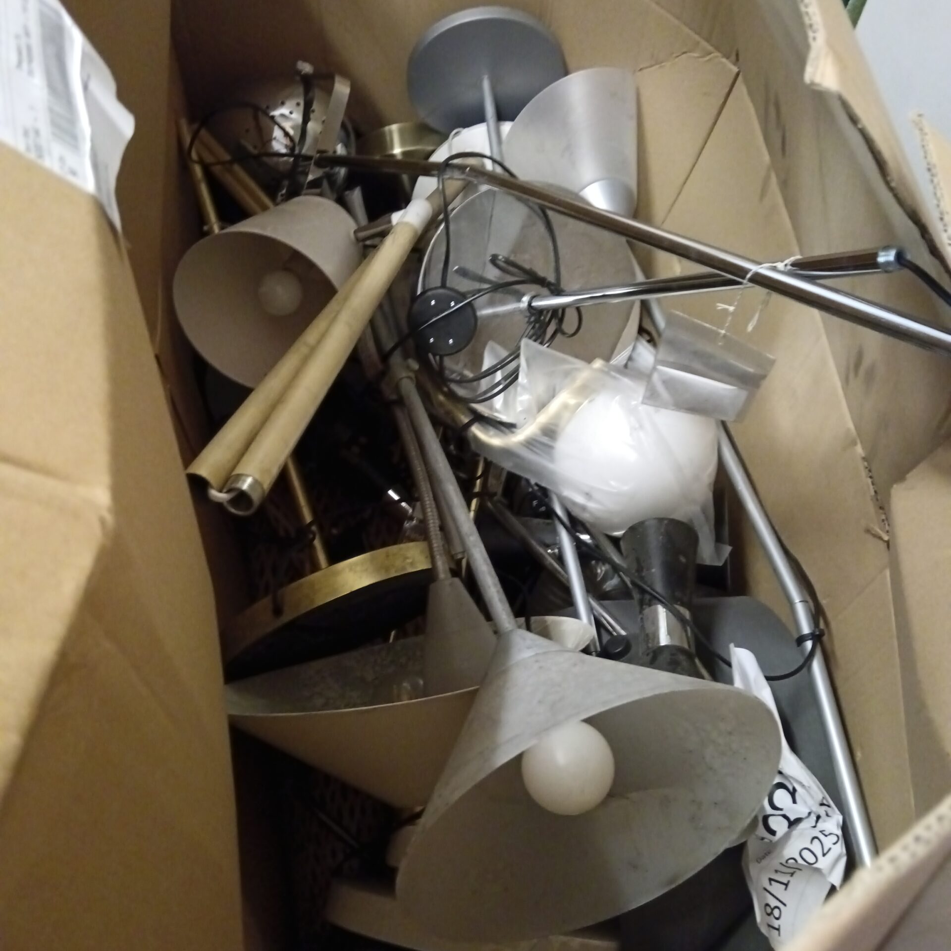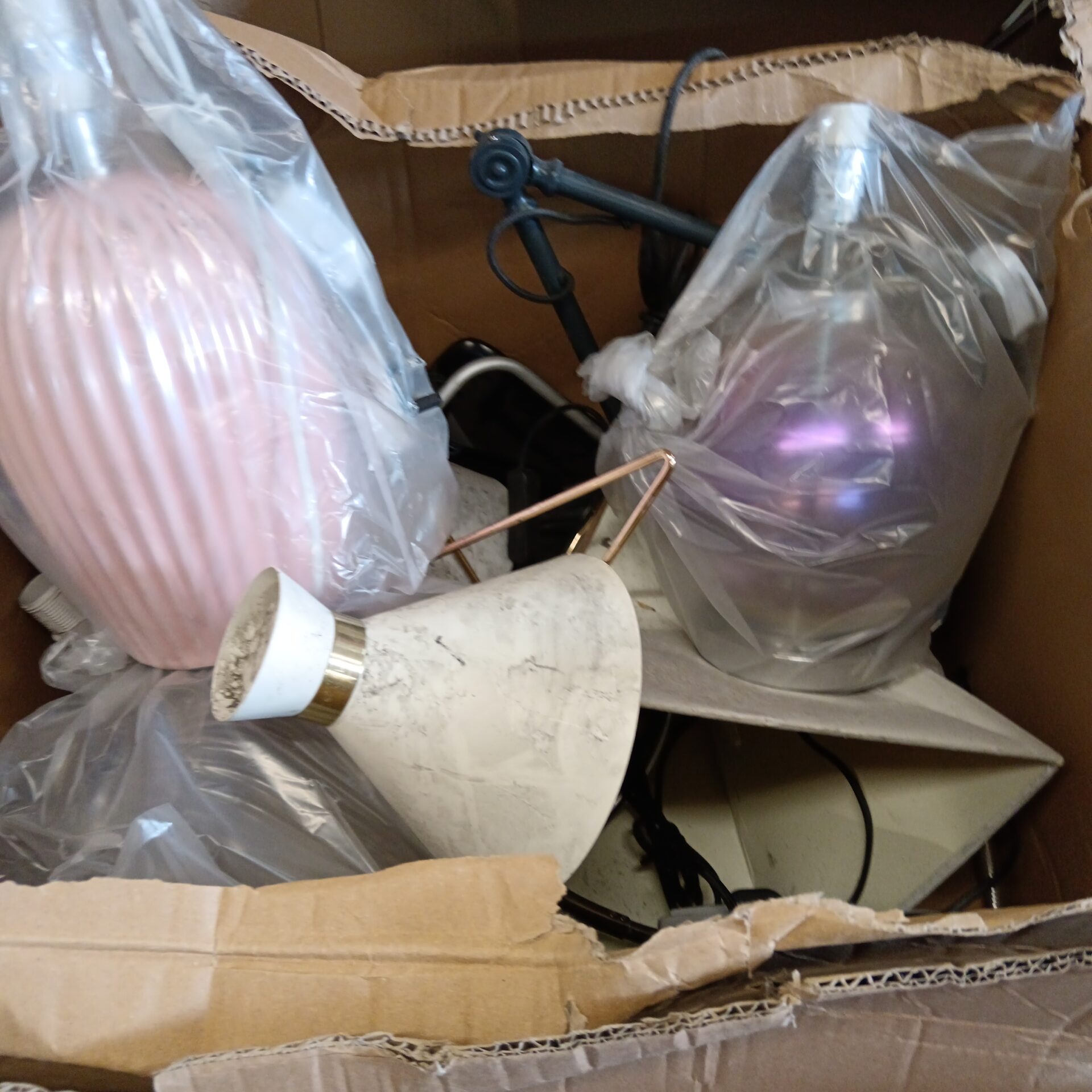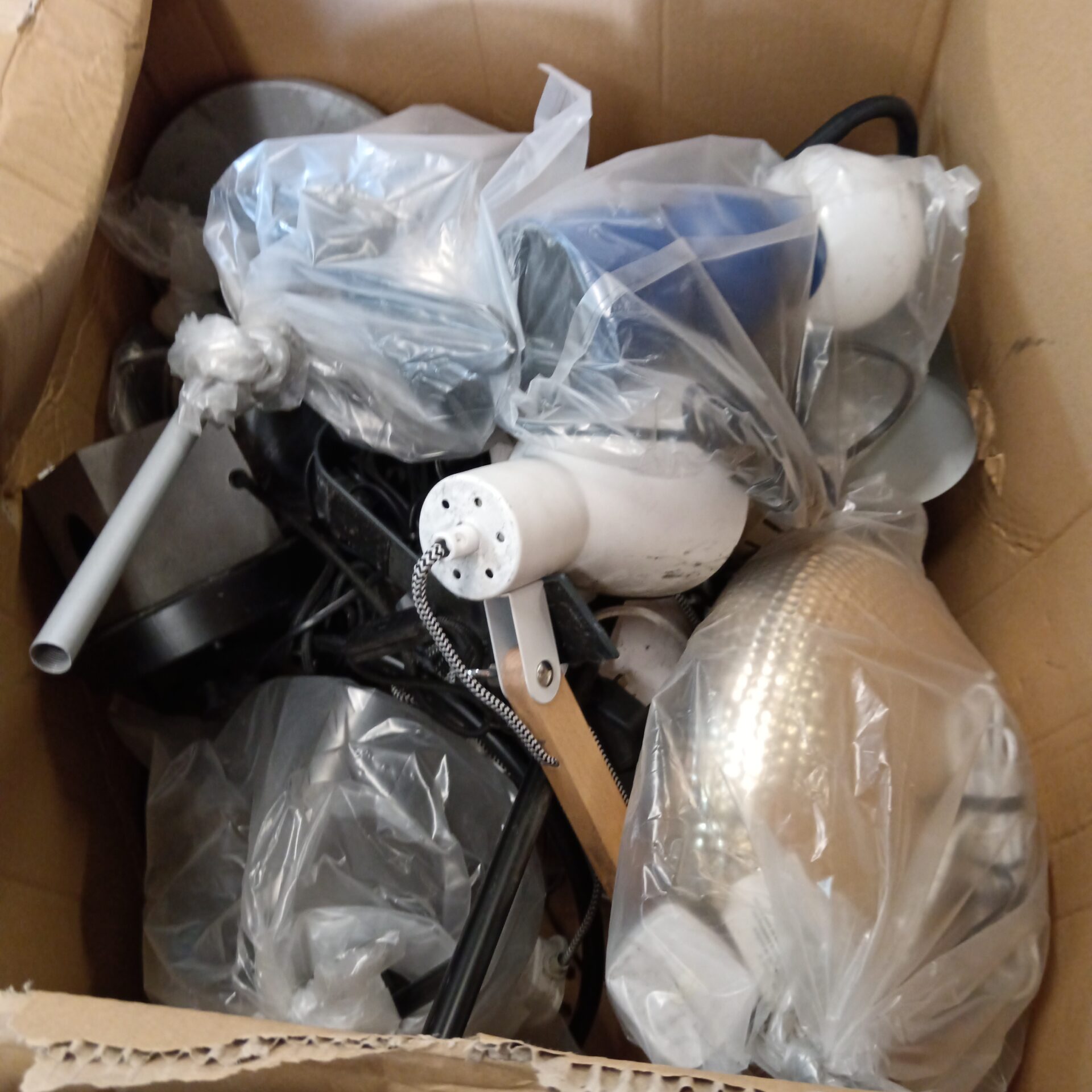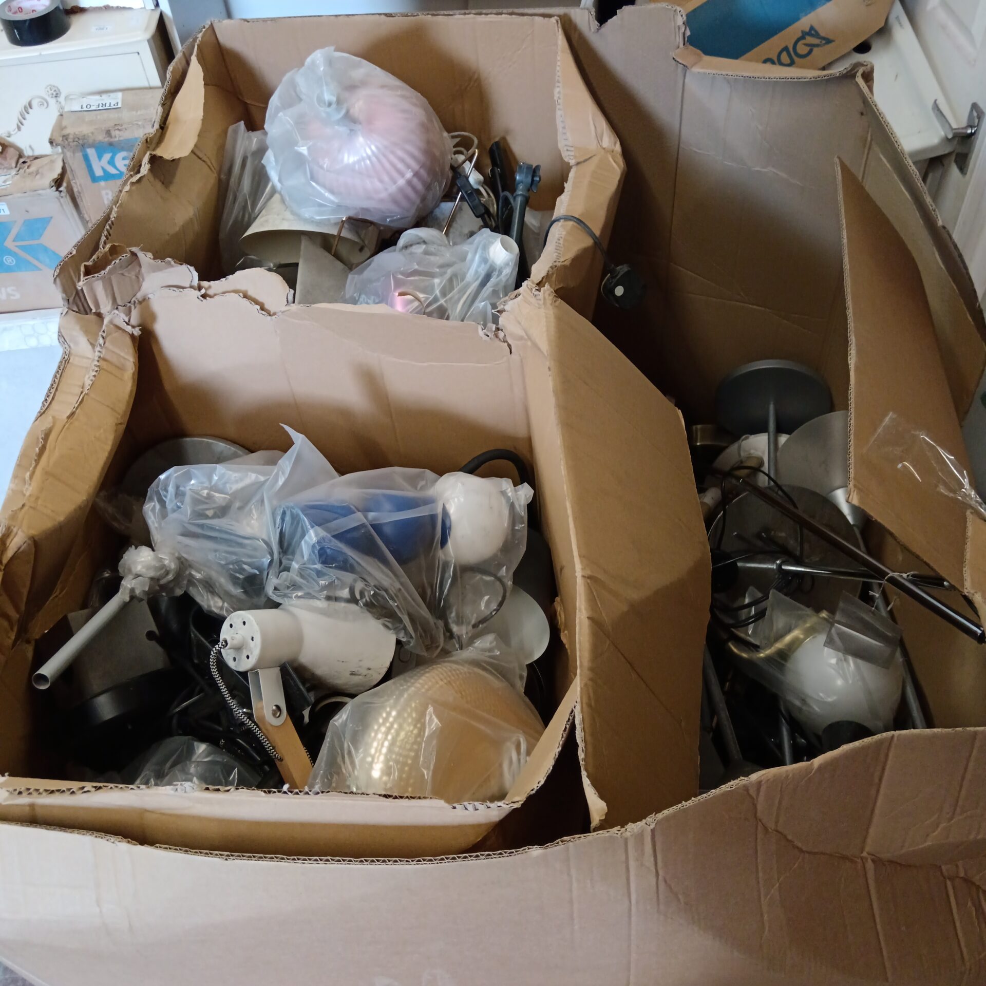 This mixed lot of lamps offers a diverse selection of lighting fixtures and components. Containing both complete lamps and spare parts, this lot is ideal for restoration projects, collectors, or those seeking unique lighting elements. A varied assortment of styles and conditions provides ample opportunity for creative repurposing.