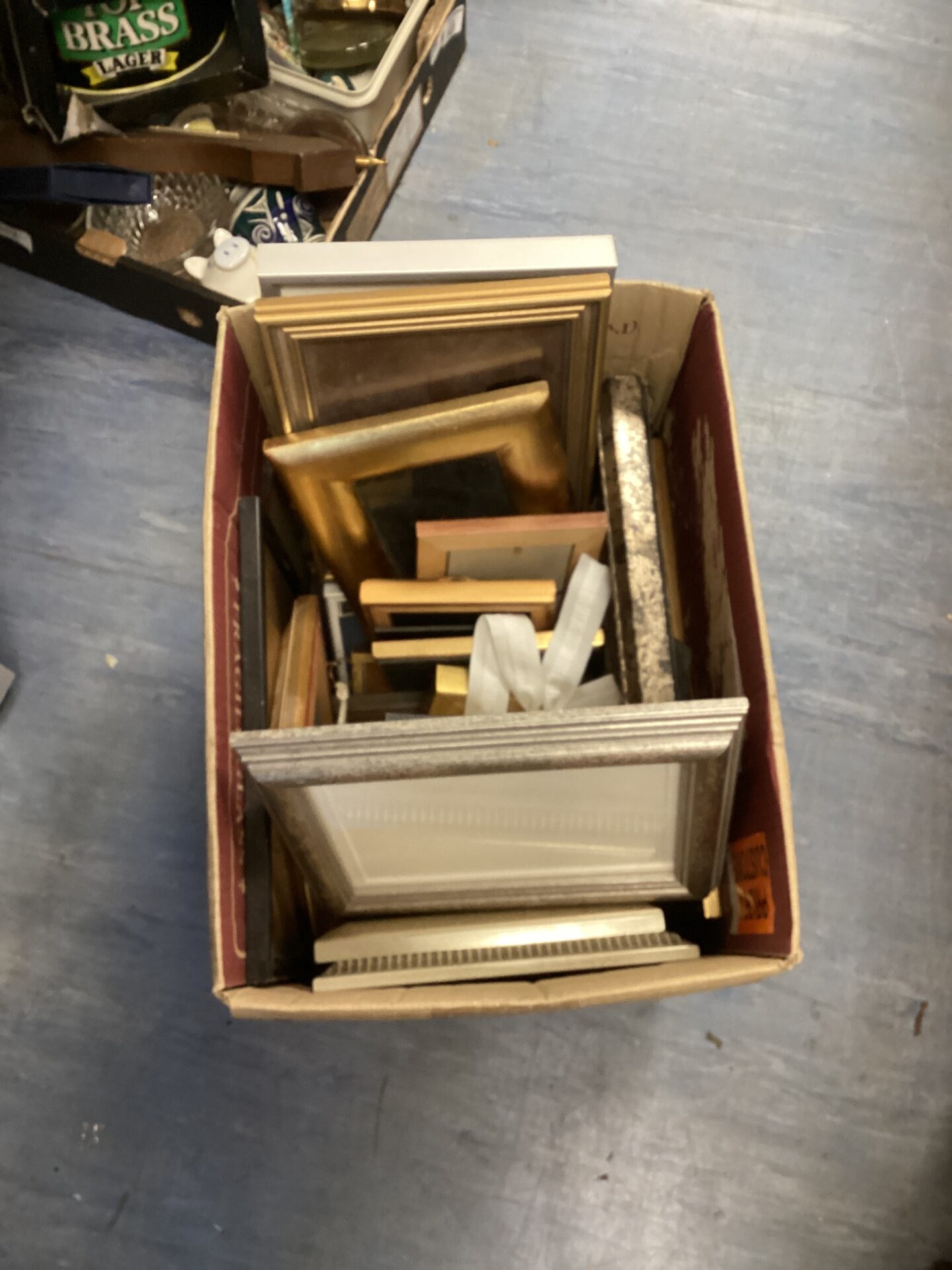 This lot comprises a collection of assorted picture frames in varying sizes and materials. The frames appear to be constructed from wood and potentially other materials, offering a diverse range of styles suitable for displaying photographs, artwork, or prints. The collection presents a unique opportunity to create a gallery wall or to repurpose the frames for craft projects.