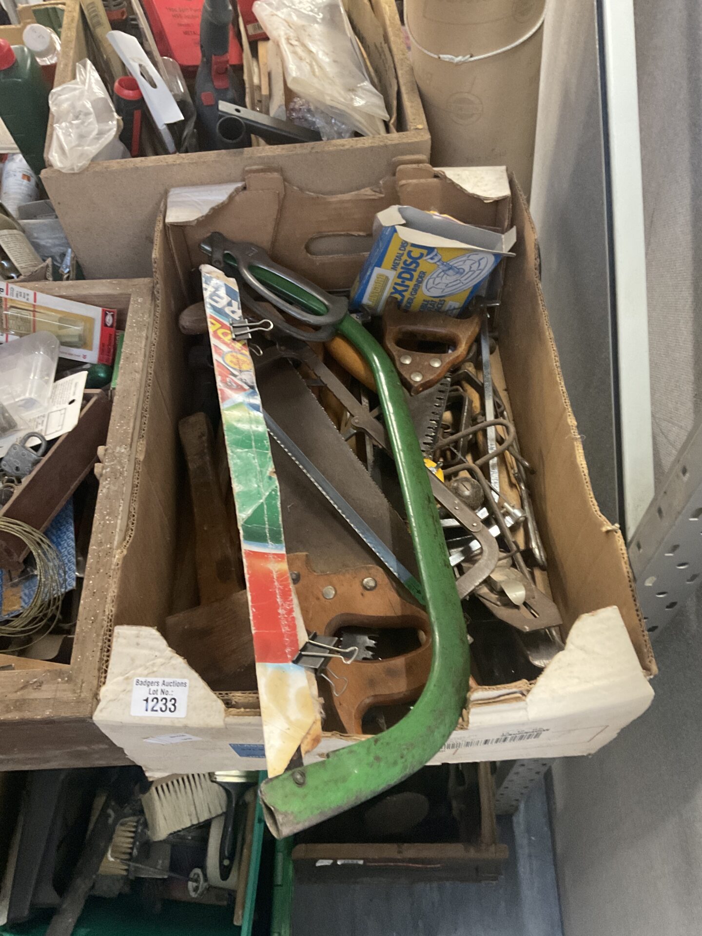 This mixed tool lot offers a diverse collection of hand tools, ideal for collectors or practical use. Contained within a wooden crate, the tools show signs of age and use, adding to their vintage appeal. A great addition to any workshop or collection.