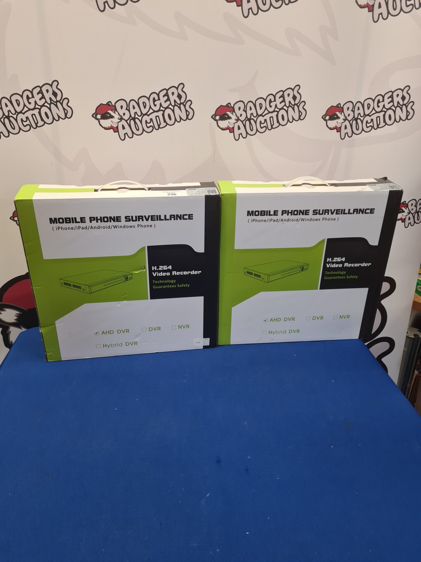 This lot comprises two DDS Mobile Phone Surveillance H.264 Video Recorders. These devices appear designed to connect to a mobile phone, potentially for recording video or audio. The recorders are compact and feature a small interface, suggesting they were intended for discreet use.