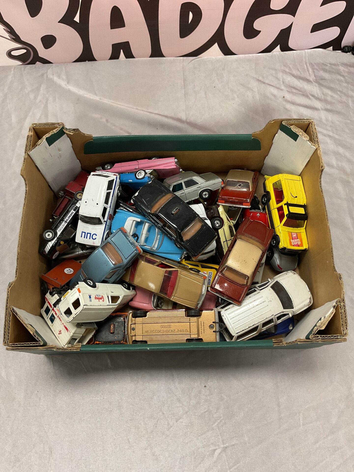 The cars present varying degrees of wear and tear, consistent with age and play. Some exhibit minor scratches, paint chips, or missing parts, while others appear in relatively good condition. This lot offers an opportunity to acquire a range of collectable toy cars, potentially including rare or sought-after models, for display, restoration, or as part of a larger collection.