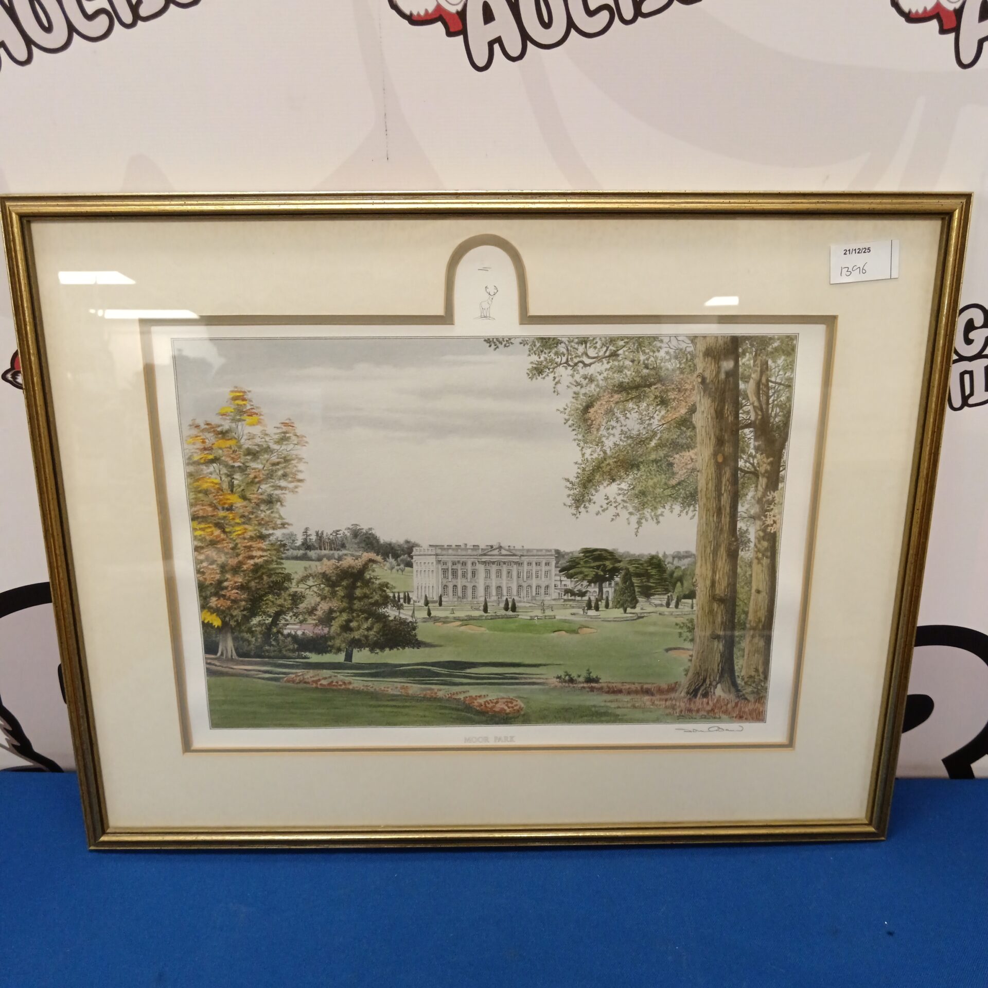 This is a print depicting Moor Park Golf Course, signed by the artist John Morland. The print showcases a detailed landscape view of the golf course, capturing the rolling greens and the clubhouse in the background. It’s a classic piece of golf memorabilia, likely appealing to enthusiasts of the sport and collectors of vintage sporting art.