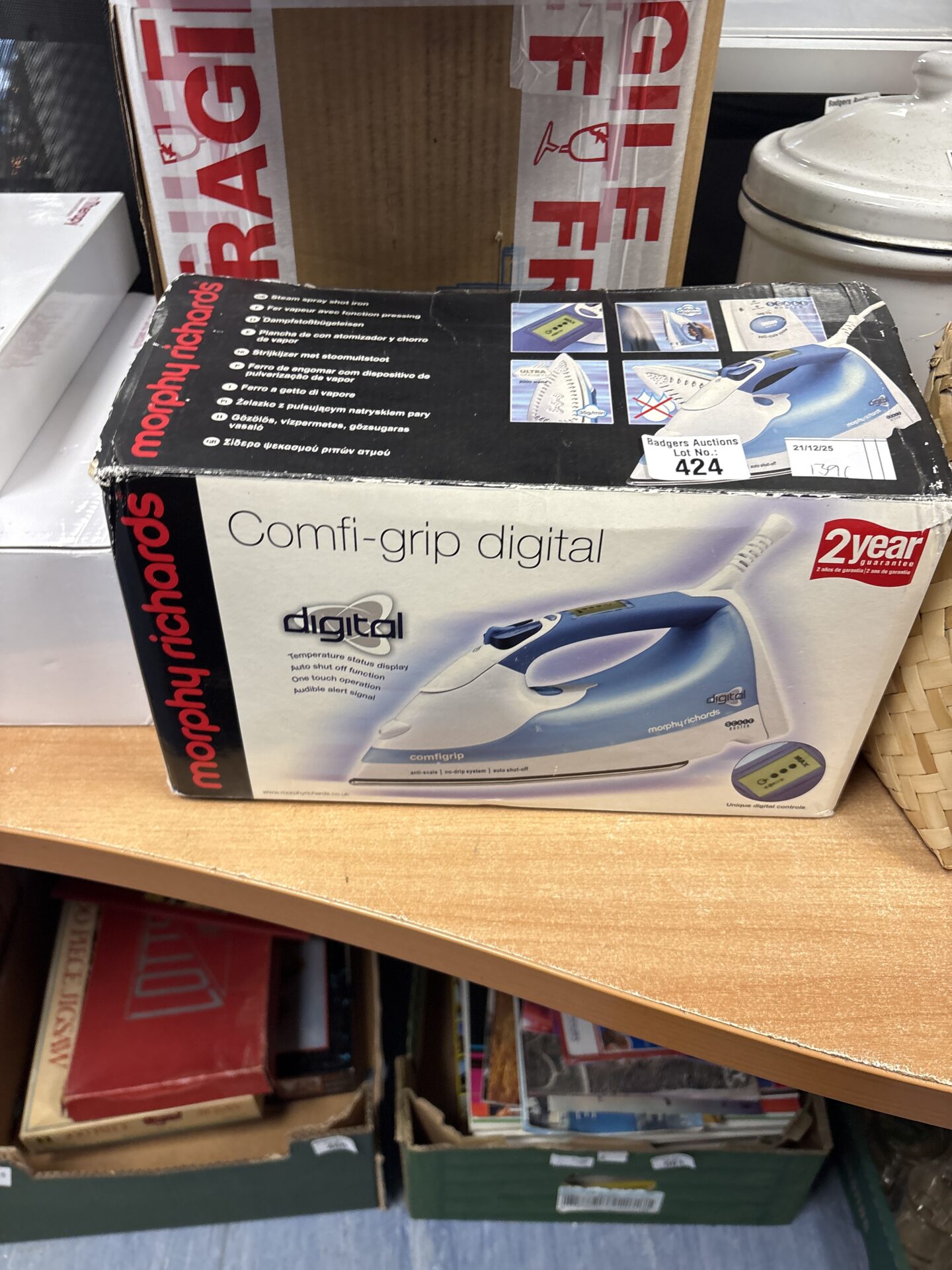 This Morphy Richards Comfi Grip Digital Iron is presented for consideration by collectors and enthusiasts. Its condition should be assessed by the buyer, as it is sold as viewed. This iron may appeal to those interested in vintage or collectible household appliances, or those seeking parts for repair or restoration.