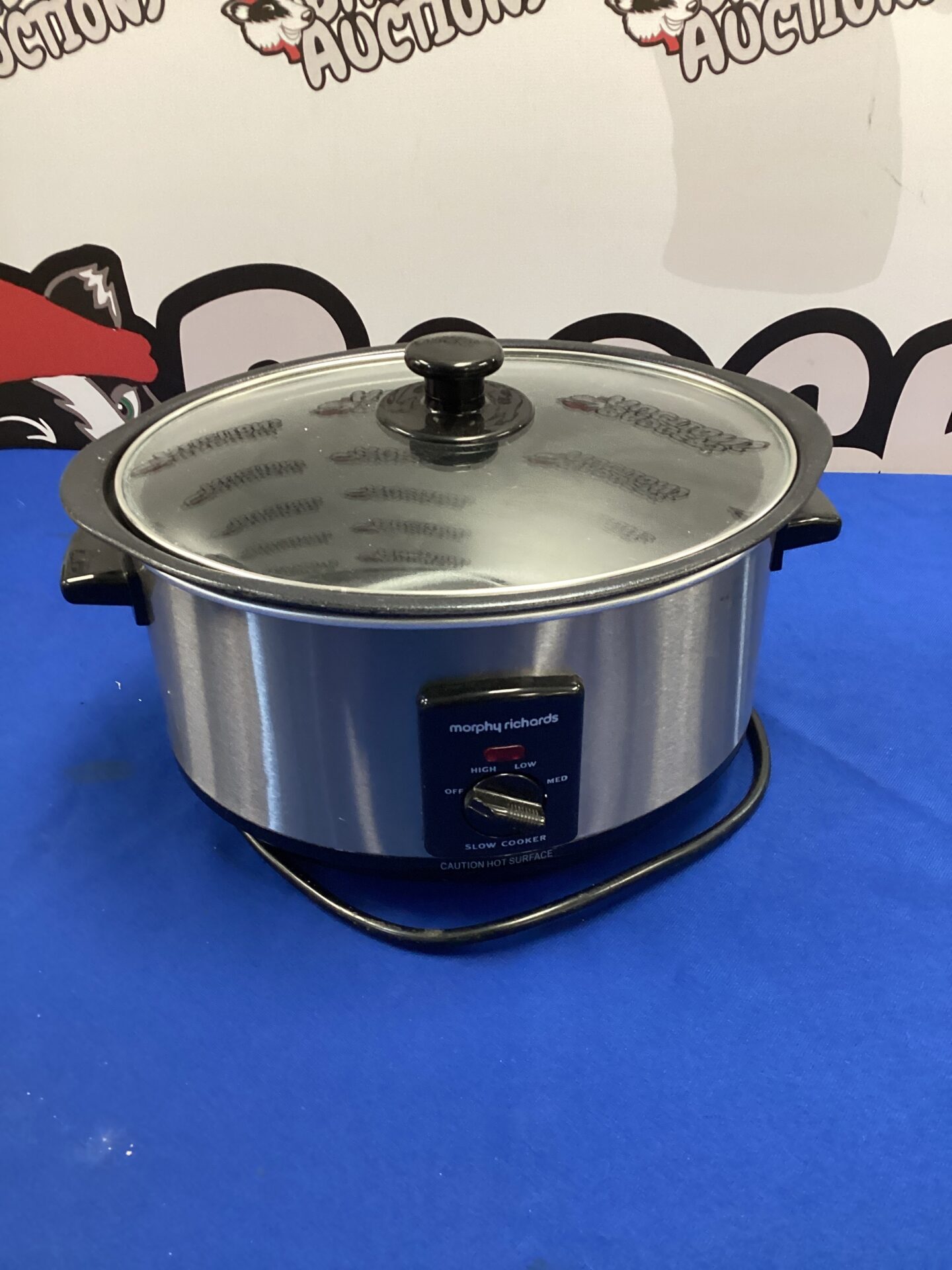 This is a compact Morphy Richards slow cooker, perfect for preparing delicious meals with minimal effort. Featuring a ceramic cooking pot and simple controls – High, Low, and Off – it’s ideal for busy weeknights or weekend feasts. Its small size makes it a great addition to any kitchen, especially where space is limited, and the removable pot makes cleaning a breeze.