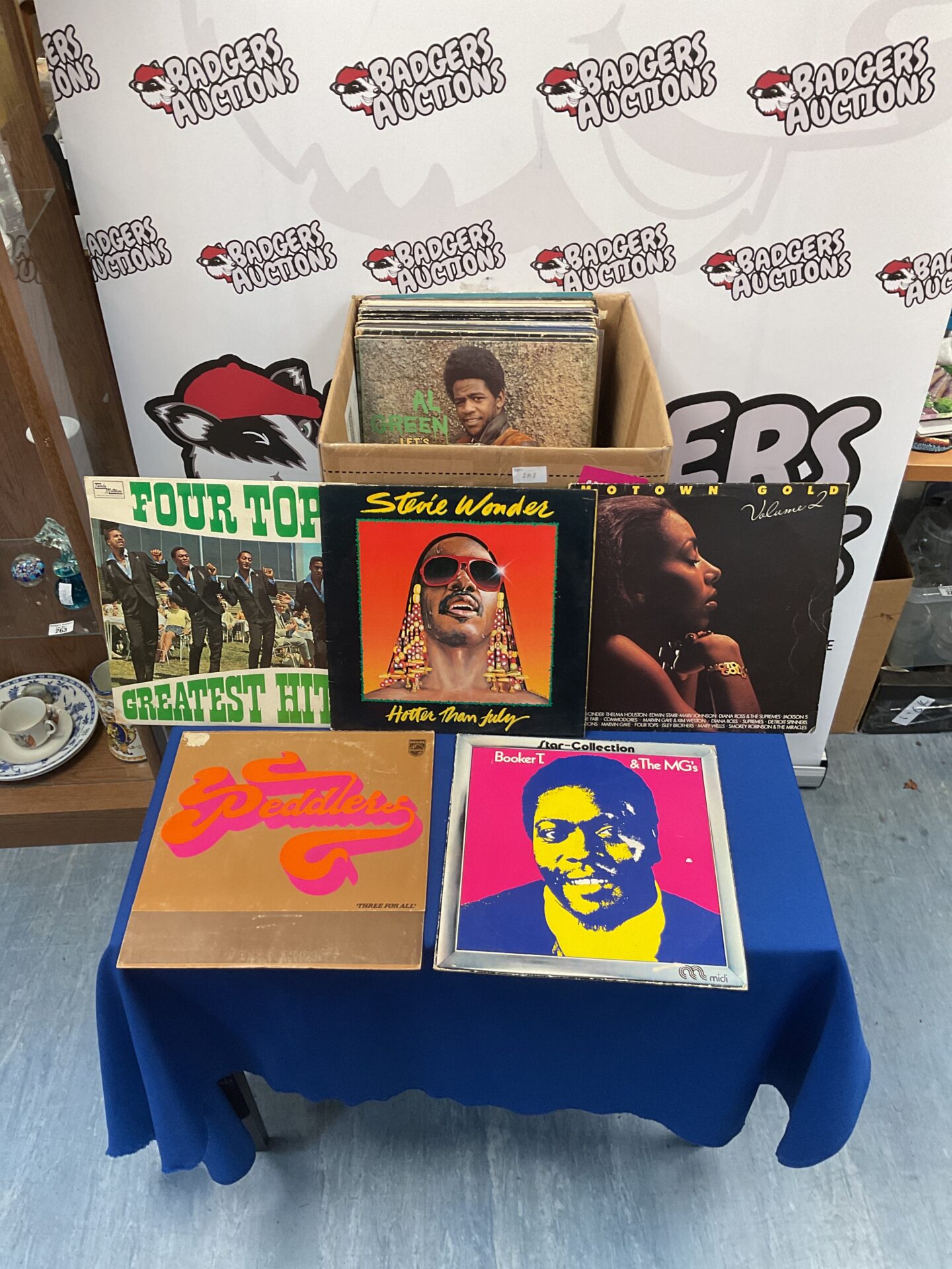 This lot comprises a collection of vinyl LPs, primarily focused on the Motown, Soul, and Jazz genres. The collection features artists such as Stevie Wonder, and appears to span several decades of music production. These records represent a significant era in popular music, showcasing the iconic sounds and artists that defined these genres.