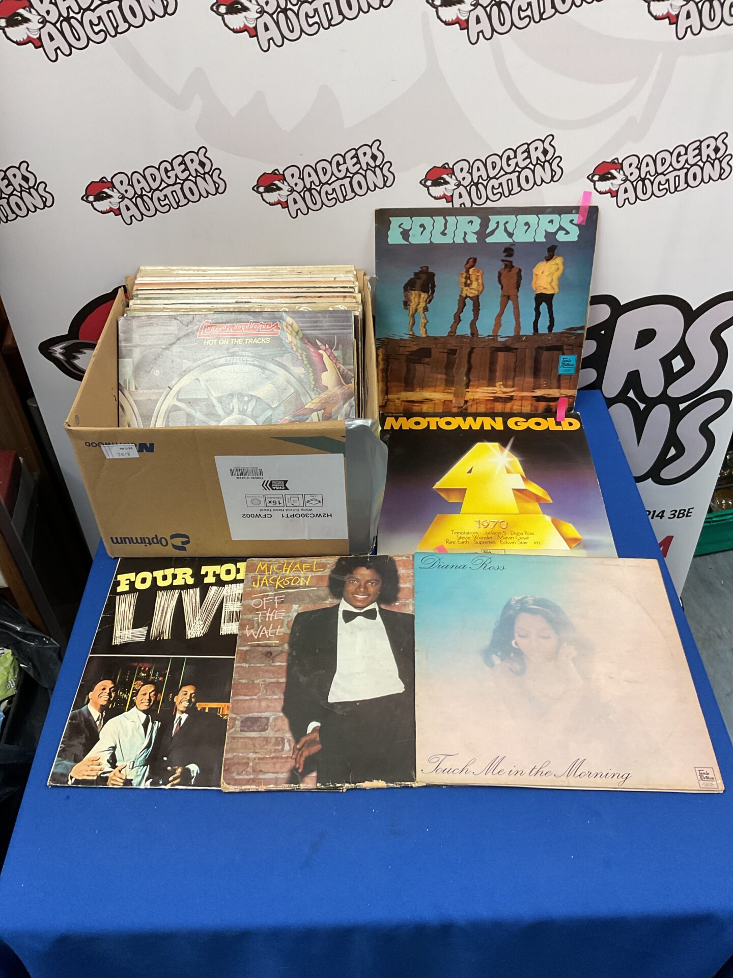 This lot comprises a collection of 12-inch vinyl LPs, prominently featuring artists from the Motown record label. The collection includes records by The Four Tops, and other soul music icons. These records represent a significant era in music history, known for its distinctive sound and cultural impact.