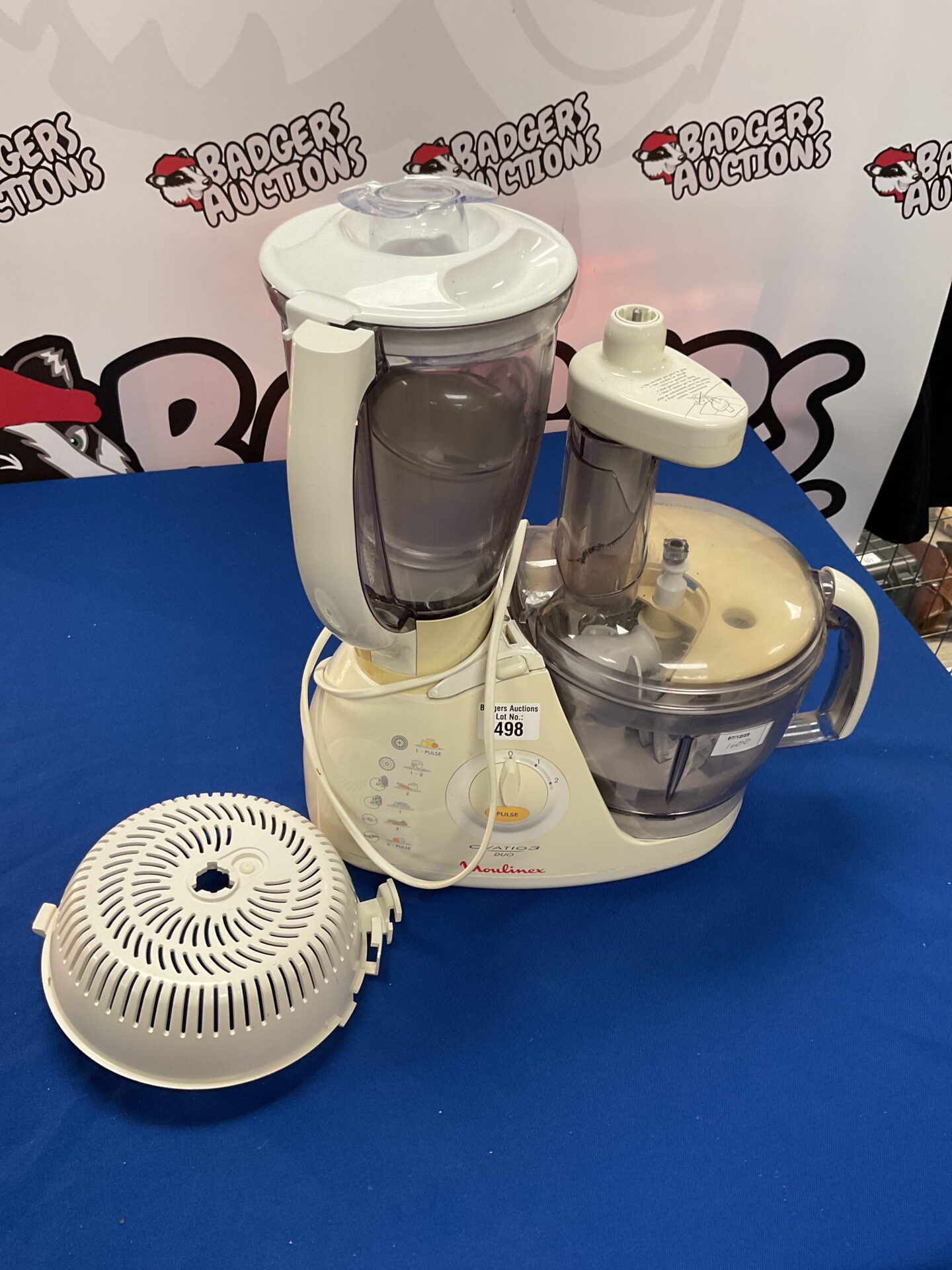 This Moulinex food processor is presented for consideration by a collector or user. Its condition should be assessed from the images provided. Vintage kitchen appliances like this are often sought after for their retro aesthetic and functionality, and may appeal to those interested in restoring or displaying classic kitchenalia.
