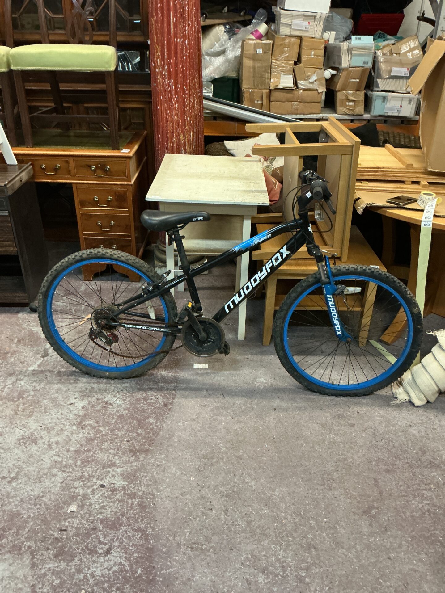 This is a Muddyfox Sniper bike, designed for off-road cycling and recreational use. It features a sturdy frame, front suspension for absorbing bumps, and knobby tires for enhanced grip on various terrains. The bike is styled for an adult rider and appears to be a men’s model, offering a robust build for tackling trails and uneven surfaces.