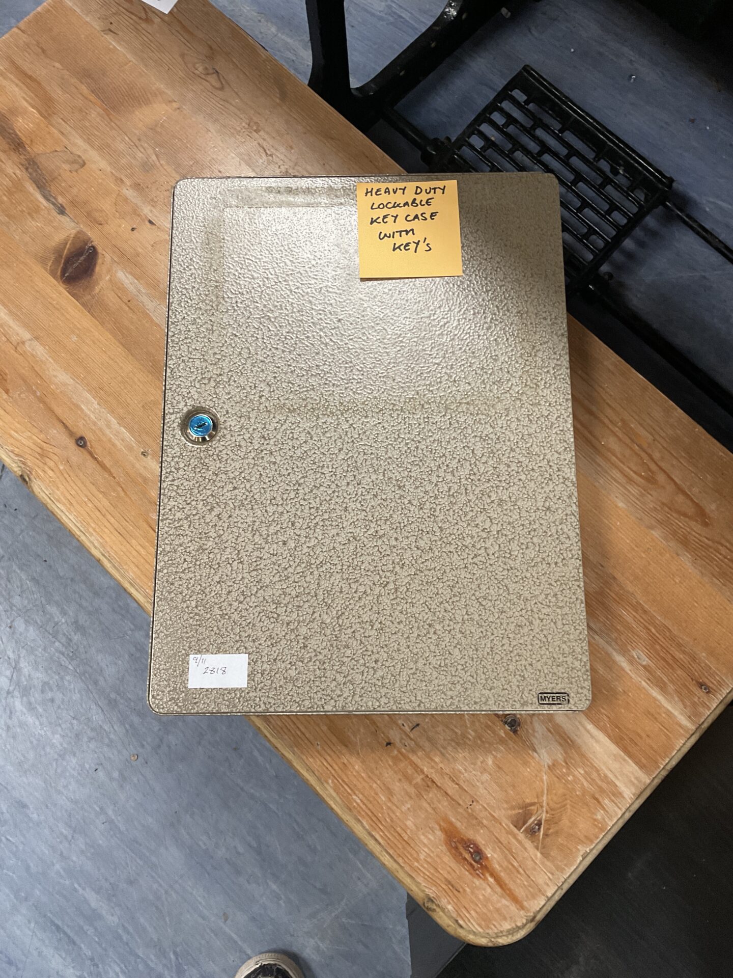 This is a Myers heavy duty key cabinet, designed for secure storage and organisation of keys. Constructed from robust metal, this cabinet is intended for industrial or commercial use, offering a durable solution for managing multiple keys. The cabinet features a locking mechanism for added security, and is designed to be wall-mounted for convenient access and space saving.