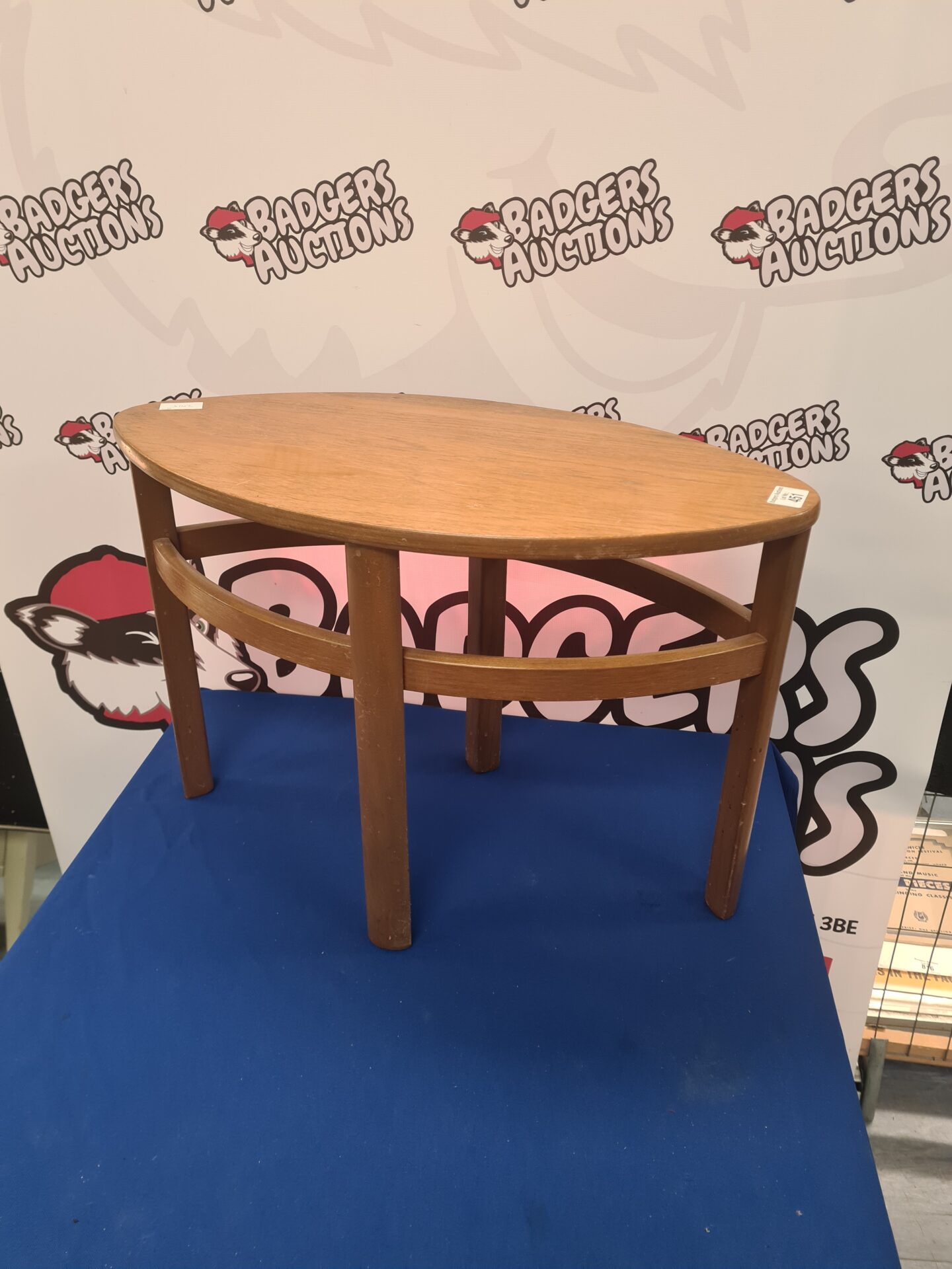 This table shows signs of wear consistent with age and use, including minor surface marks and potential fading to the teak. It presents well and retains its original character. This Nathan Trinity table is a desirable piece for collectors of mid-century furniture and those seeking a stylish and functional addition to their home.