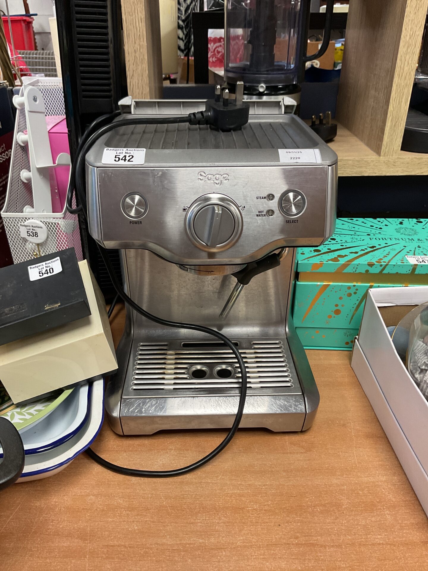 This is a Sage Nespresso coffee machine, designed for creating single-serve espresso and coffee beverages. The machine features a sleek, modern design and is intended for countertop use. It is designed to be compatible with Nespresso capsules, offering a convenient and consistent brewing experience.