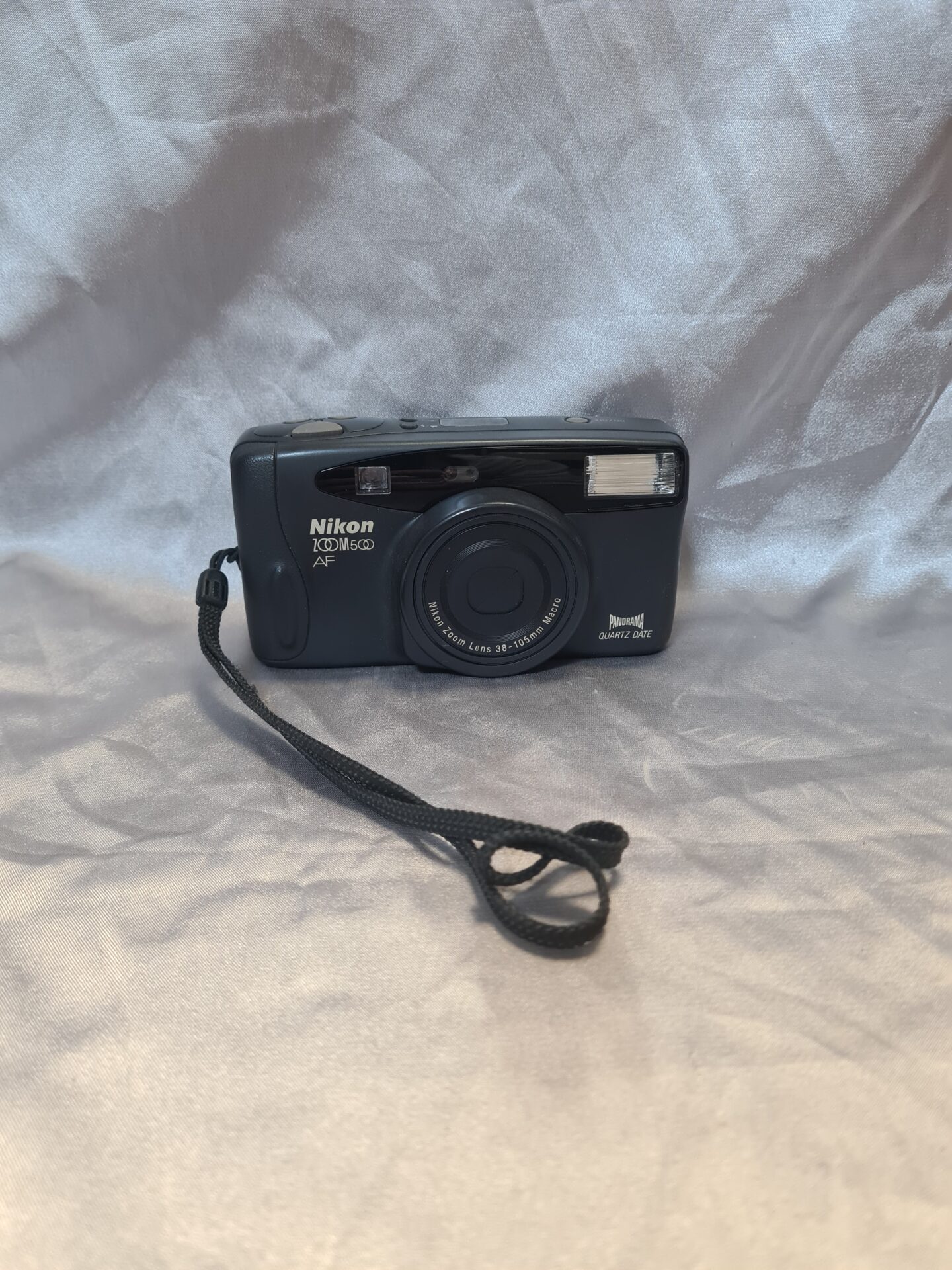 This is a Nikon Zoom500 AF 35mm point and shoot camera. It features an automatic focus system and a built-in zoom lens, offering convenience and versatility for capturing moments. The camera’s compact design and user-friendly operation make it suitable for both amateur and experienced photographers.