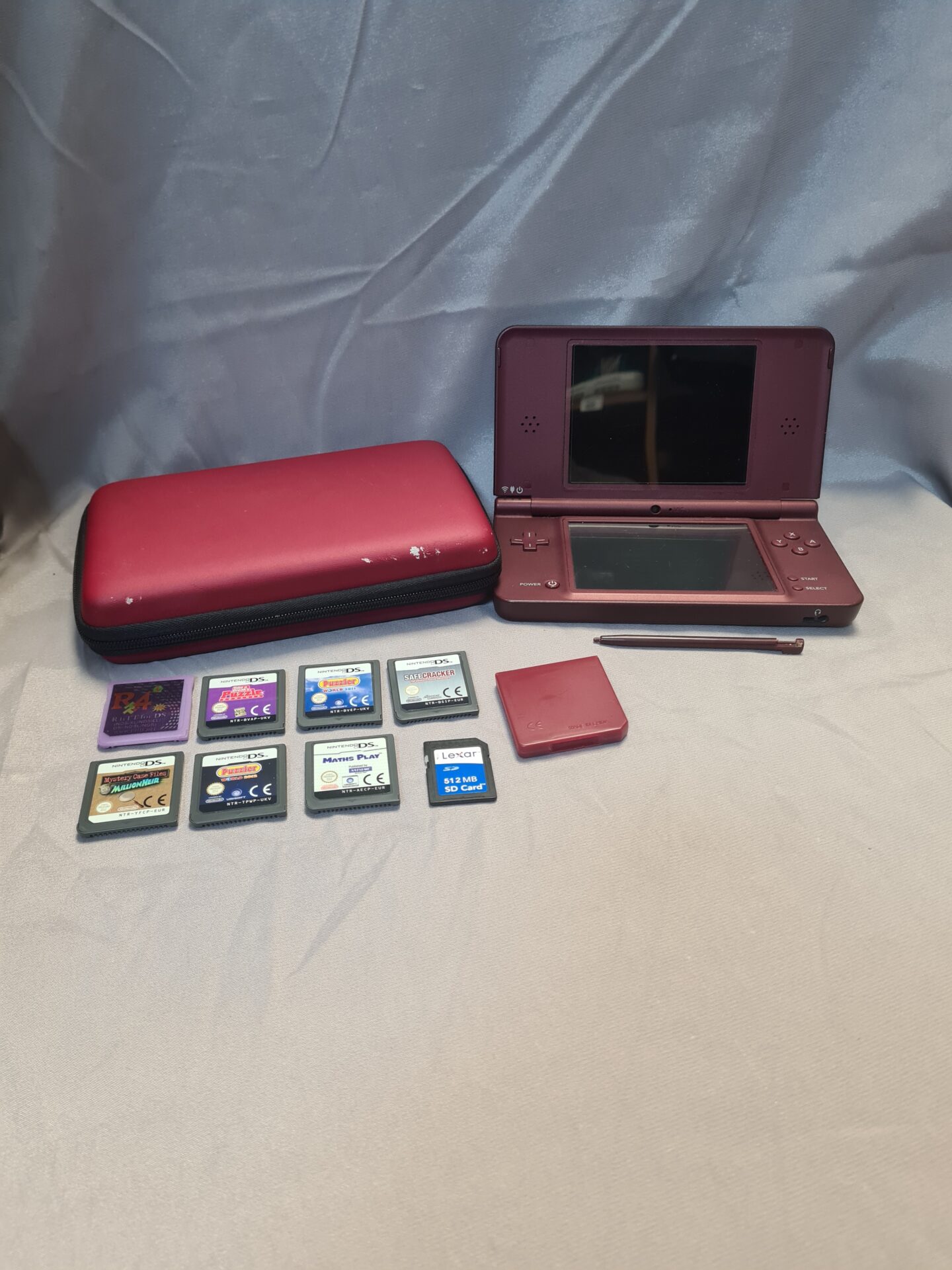 This Nintendo DS XL console appears as presented in the images. It is accompanied by a selection of games and a protective carry case. This console may appeal to collectors of retro gaming hardware, or those seeking a nostalgic gaming experience.