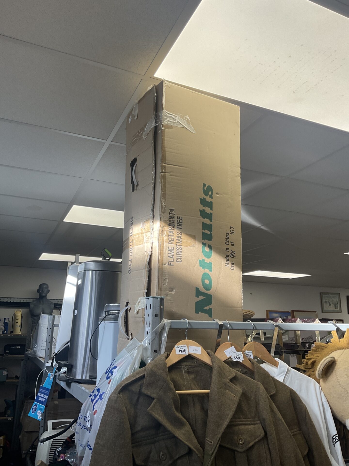 The tree remains in its original packaging, and its condition appears consistent with storage. While the contents have not been inspected, the sealed box suggests the tree is complete. This item may appeal to collectors of festive decorations or those seeking a vintage or retro Christmas aesthetic, or simply someone looking for a convenient and reusable Christmas tree.