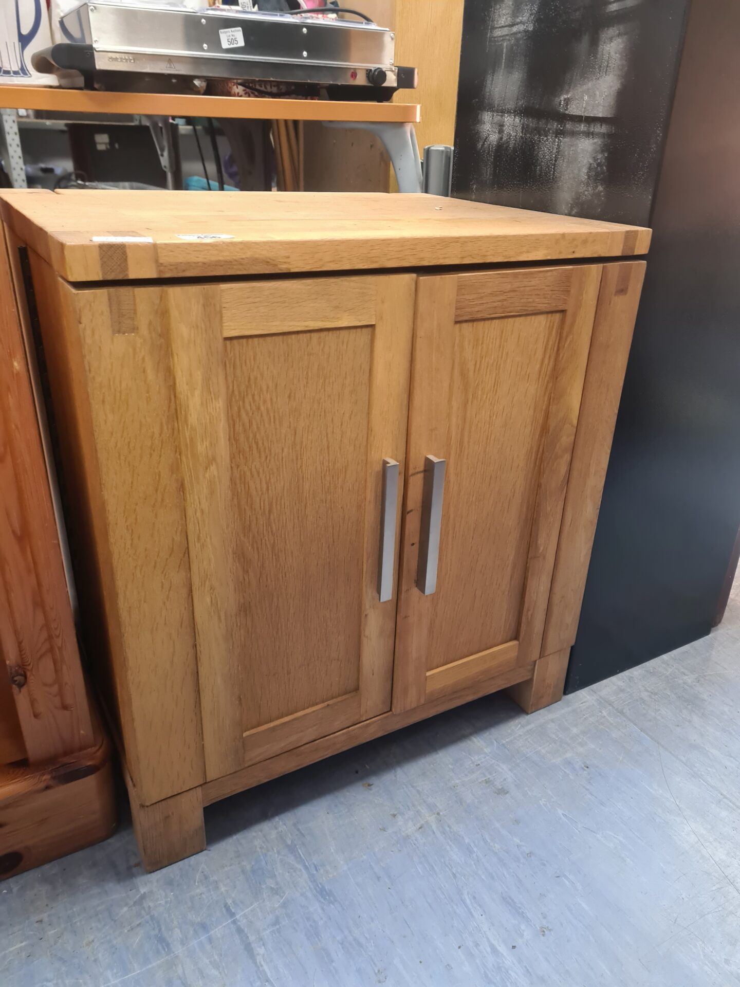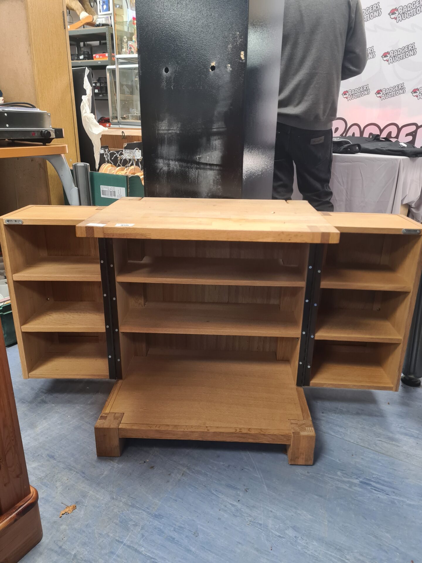 This is a handsome oak CD cabinet, designed to neatly store and display a collection of CDs. Constructed from solid oak, it features a classic design with two doors and a spacious interior. The warm wood grain and simple lines make it a versatile piece that would suit a variety of décor styles. It’s a practical and attractive solution for music lovers.