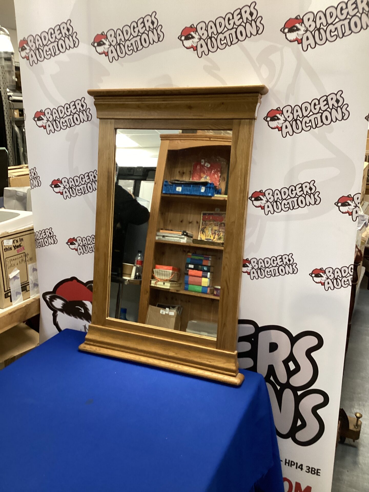This is a beautiful antique oak framed mirror, featuring a classic design and a substantial, well-crafted wooden frame. The mirror itself is bevelled, adding depth and visual interest, and the oak frame exhibits a warm, rich tone. This piece would have originally been a statement piece in a Victorian or Edwardian home, offering both functionality and decorative appeal.