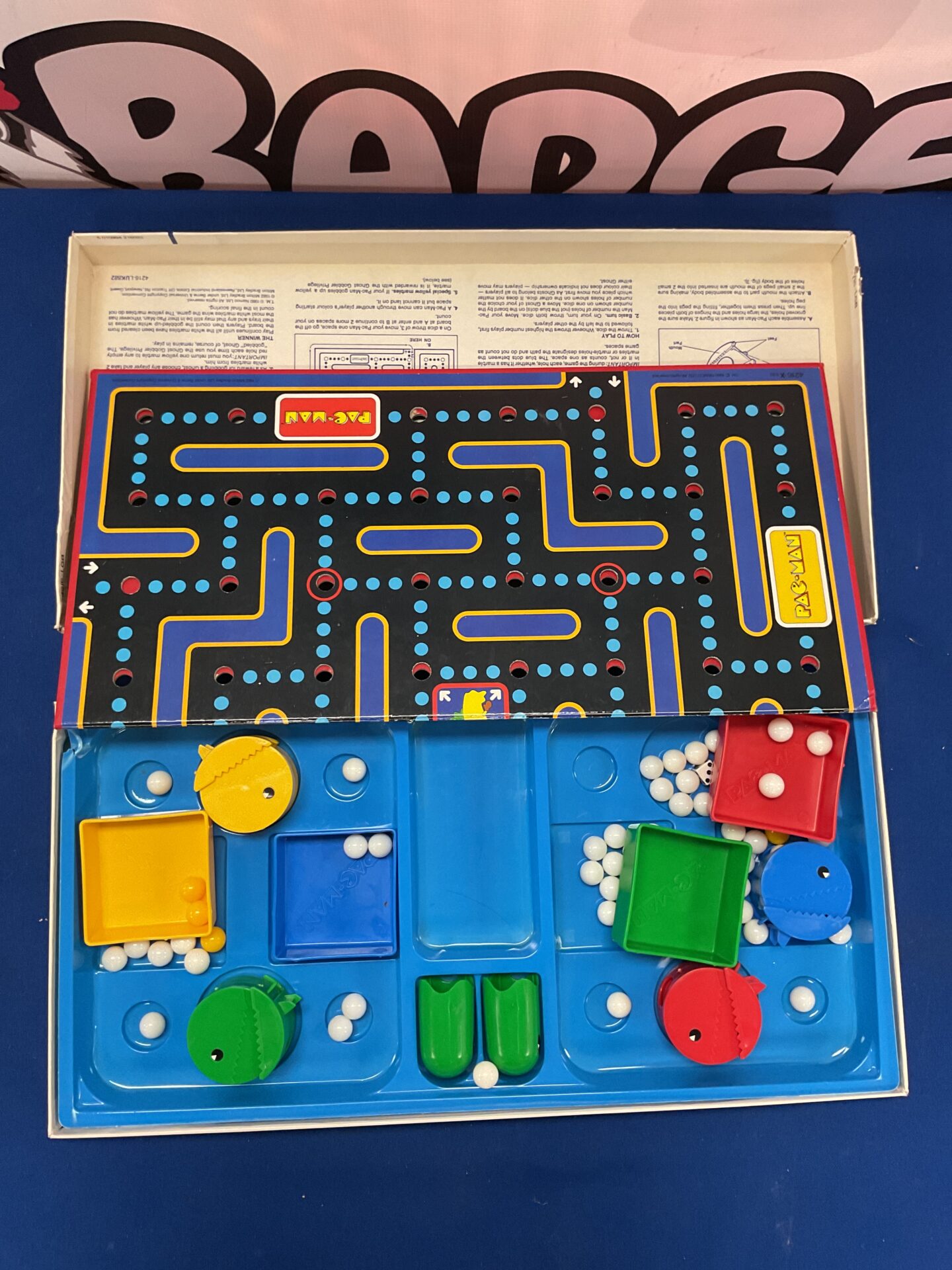This vintage board game shows signs of age and use, consistent with its vintage nature. The board and components exhibit wear, and the game’s completeness cannot be confirmed. Despite this, it remains a desirable piece for collectors of vintage board games, Pac-Man memorabilia, or 1980s pop culture. It offers a nostalgic trip for those who grew up with the arcade game and a unique addition to any collection.