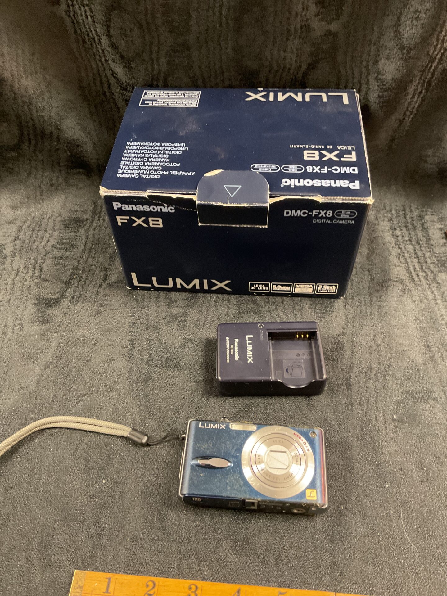 This Panasonic Lumix DMC-FX8 is presented as seen in the images. It may exhibit signs of previous use or storage. This camera may be of interest to collectors of vintage digital cameras, photography enthusiasts, or those looking for a nostalgic piece of technology.