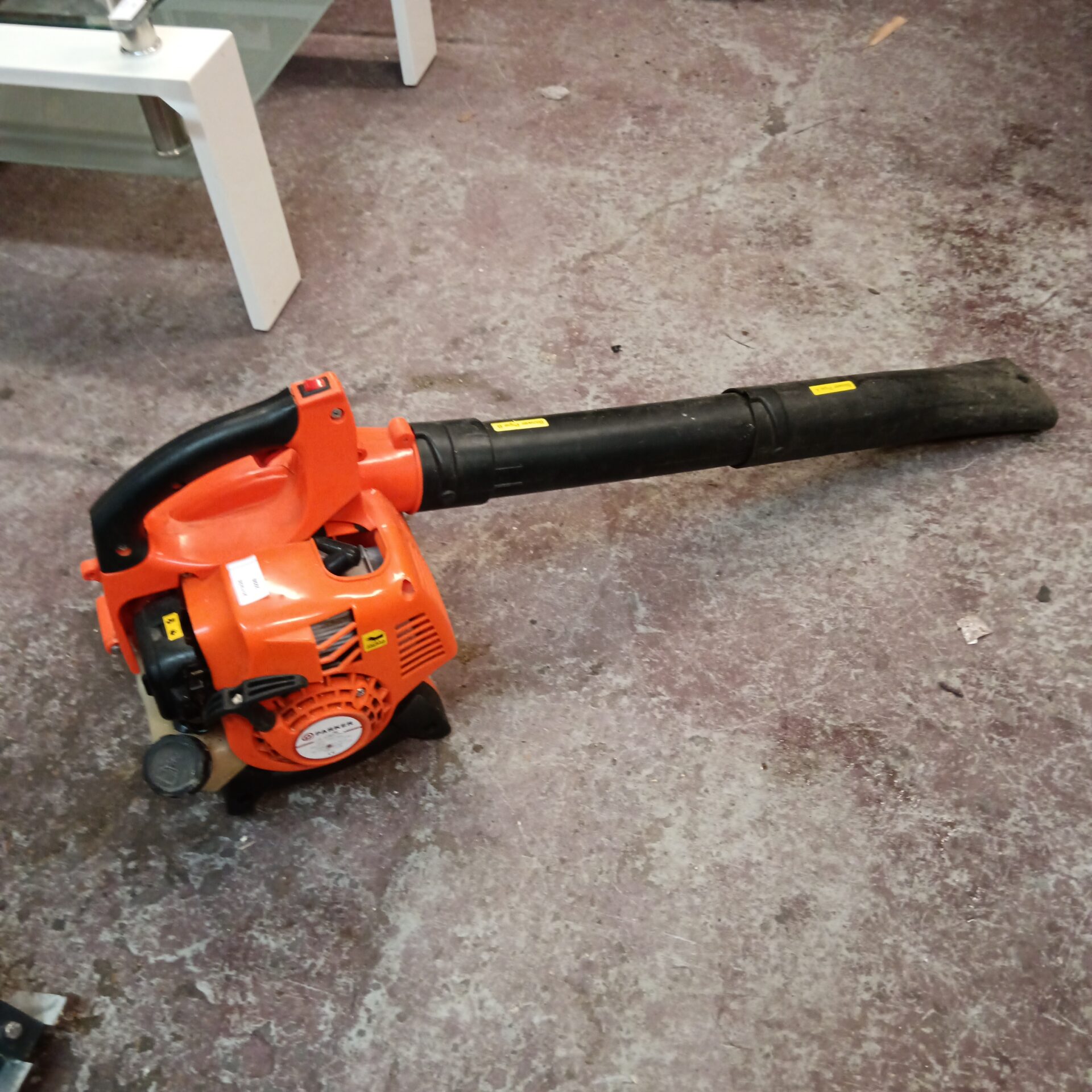 This is a Parker petrol leaf blower, designed for clearing leaves and debris from gardens and outdoor spaces. The blower features a handheld design for ease of use and maneuverability. It’s constructed from durable materials, typical of garden power tools, and designed for efficient operation.