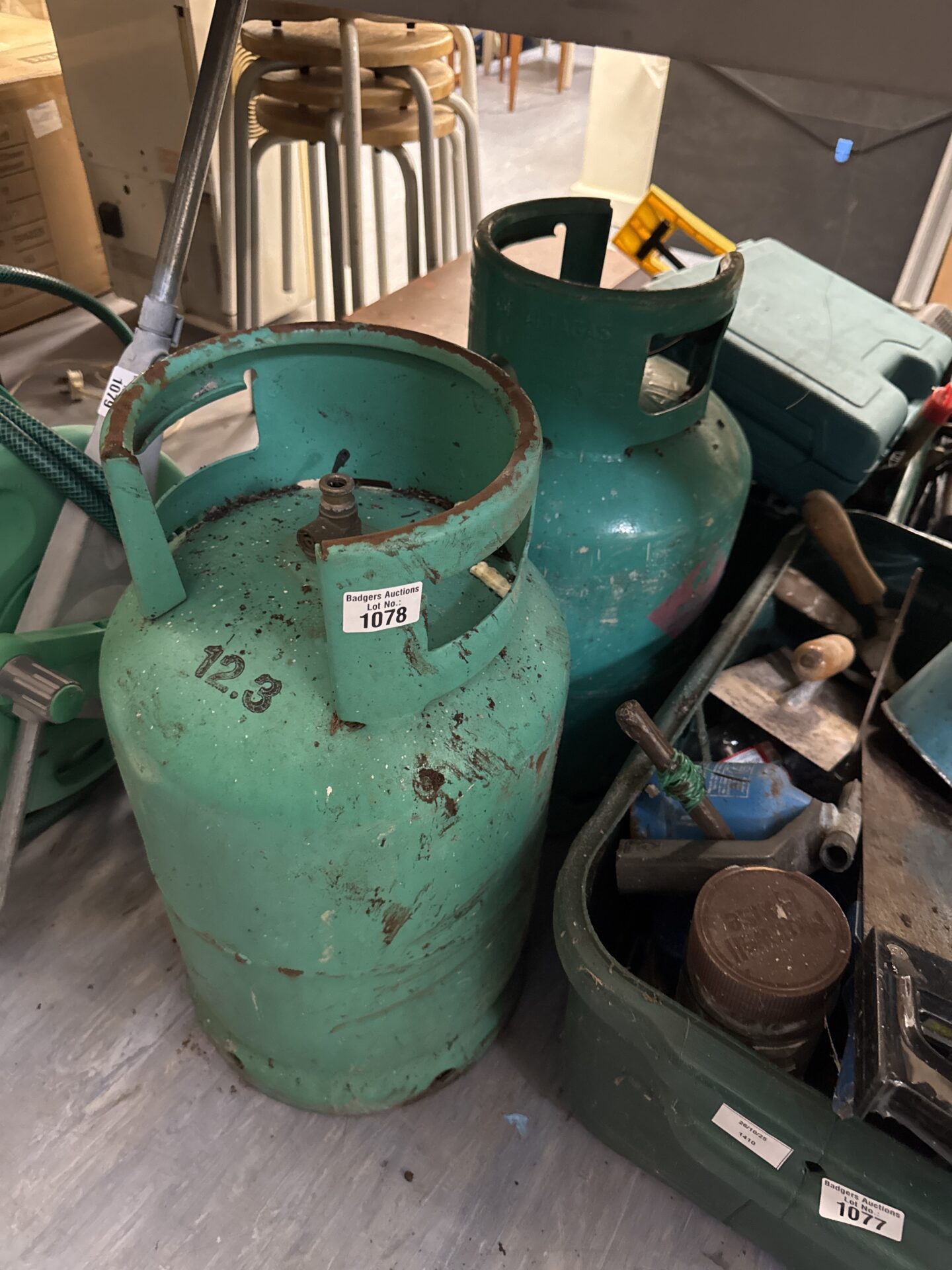 This canister shows signs of wear and tear consistent with outdoor use, including surface rust and minor dents. The contents are partially full, and the canister is being sold as seen. It may be of interest to those requiring a gas supply for outdoor activities, or as a collectible item for enthusiasts of vintage camping or garden equipment.