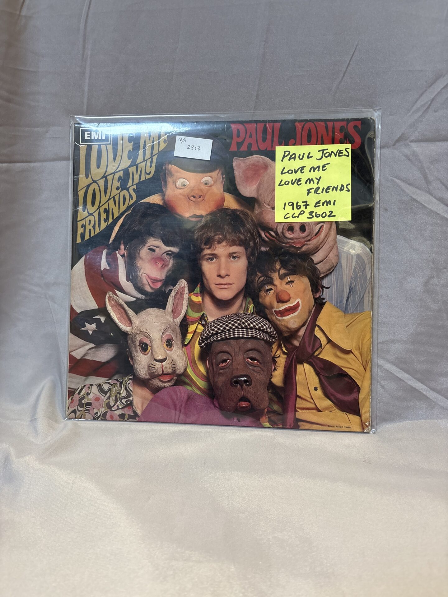 This is a vinyl LP by Paul Jones, titled “Love Me Love My Friends”, released in 1967 by EMI LLP with catalogue number 3602. The album showcases the British Beat sound of the era, featuring Jones’ distinctive vocals and songwriting. The cover art is vibrant and eye-catching, typical of album designs from the mid-1960s.