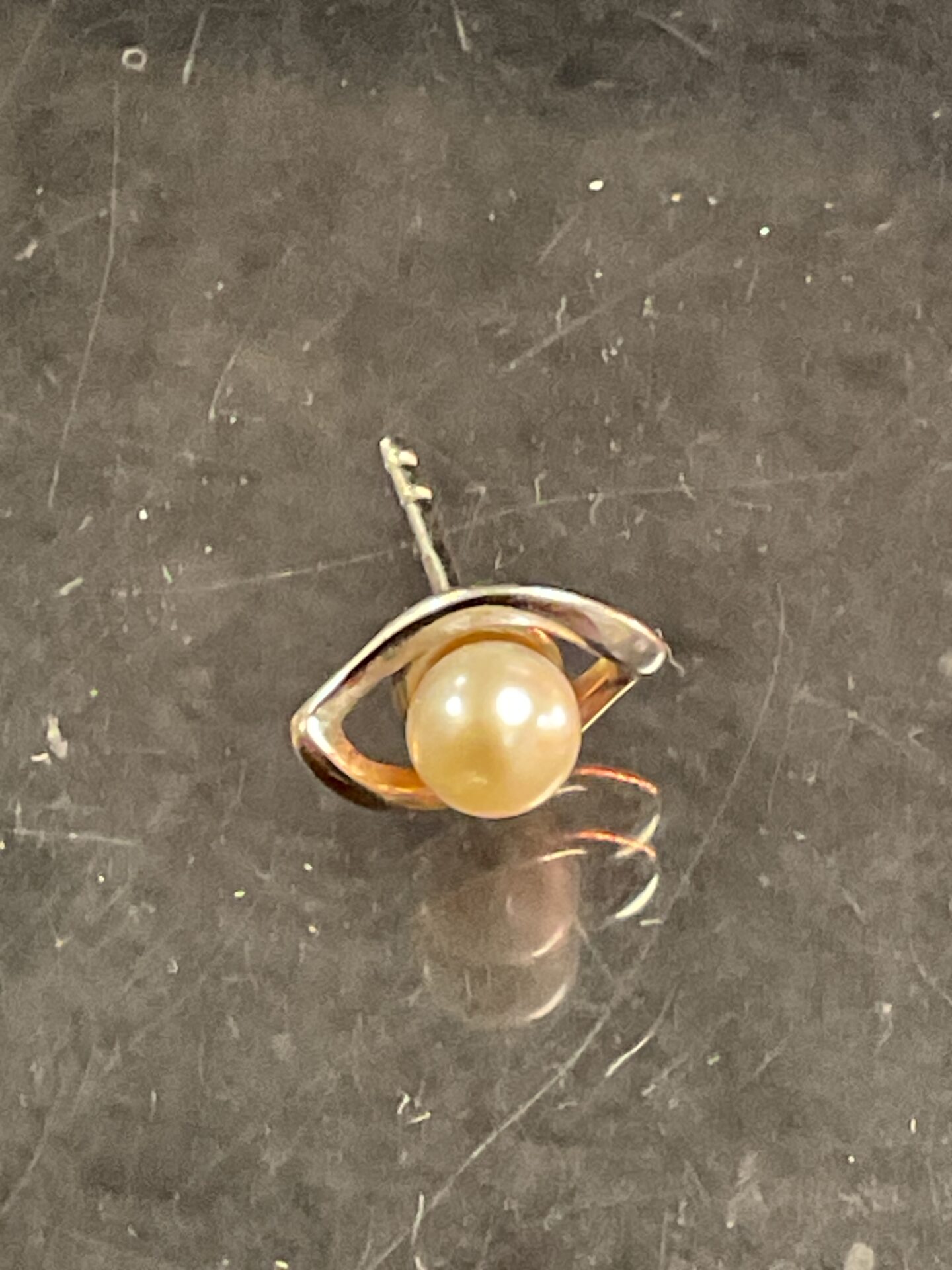 This earring appears to be in good condition, with the pearl displaying a pleasing sheen. While the earring is presented as a single, it retains its original charm and could be a valuable addition to a collection of vintage jewellery. It may appeal to buyers seeking a unique piece or those looking to complete a pair.