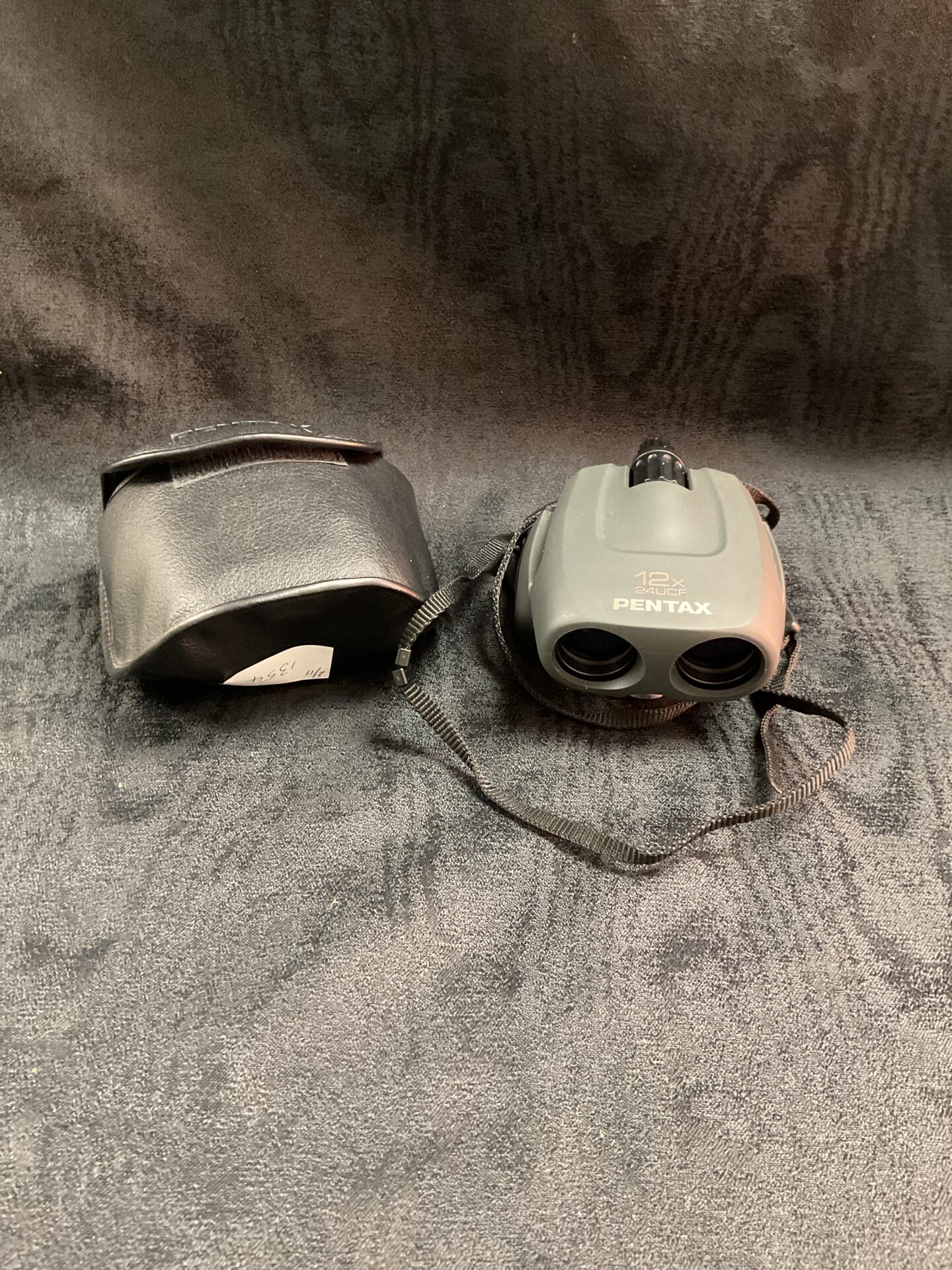 These are a pair of Pentax 12×24 UCF field binoculars. They feature a classic design, intended for outdoor use and observation. The binoculars are constructed with a durable body and offer 12x magnification with a 24mm objective lens, providing a balance between detail and field of view.