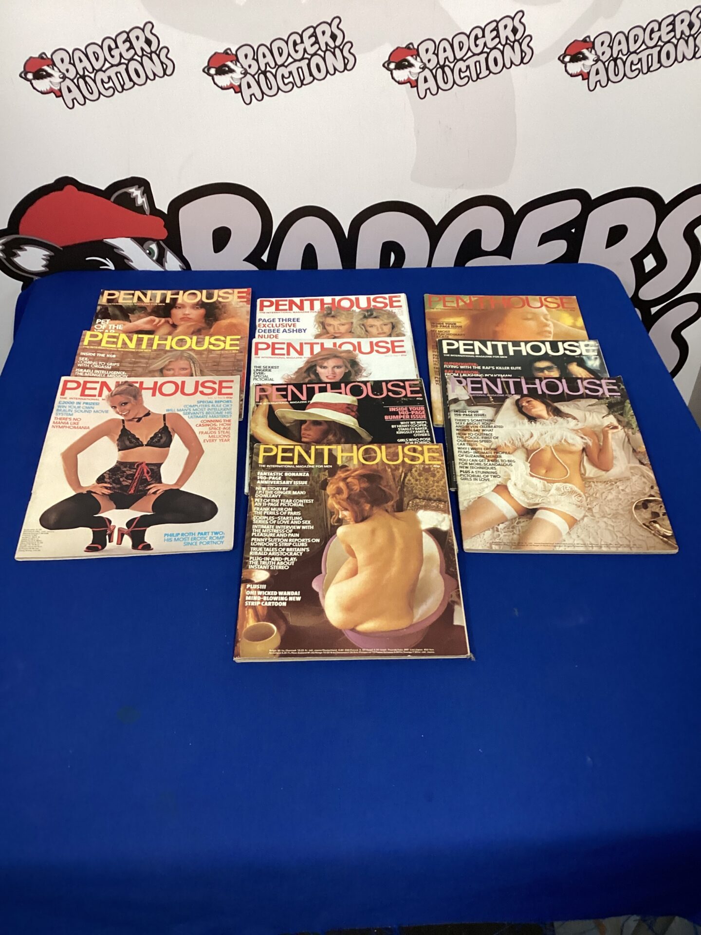 This is a bundle of vintage Penthouse magazines. These publications are known for their adult content and were popular during their time. The magazines feature photography, fiction, and articles geared towards a mature audience.