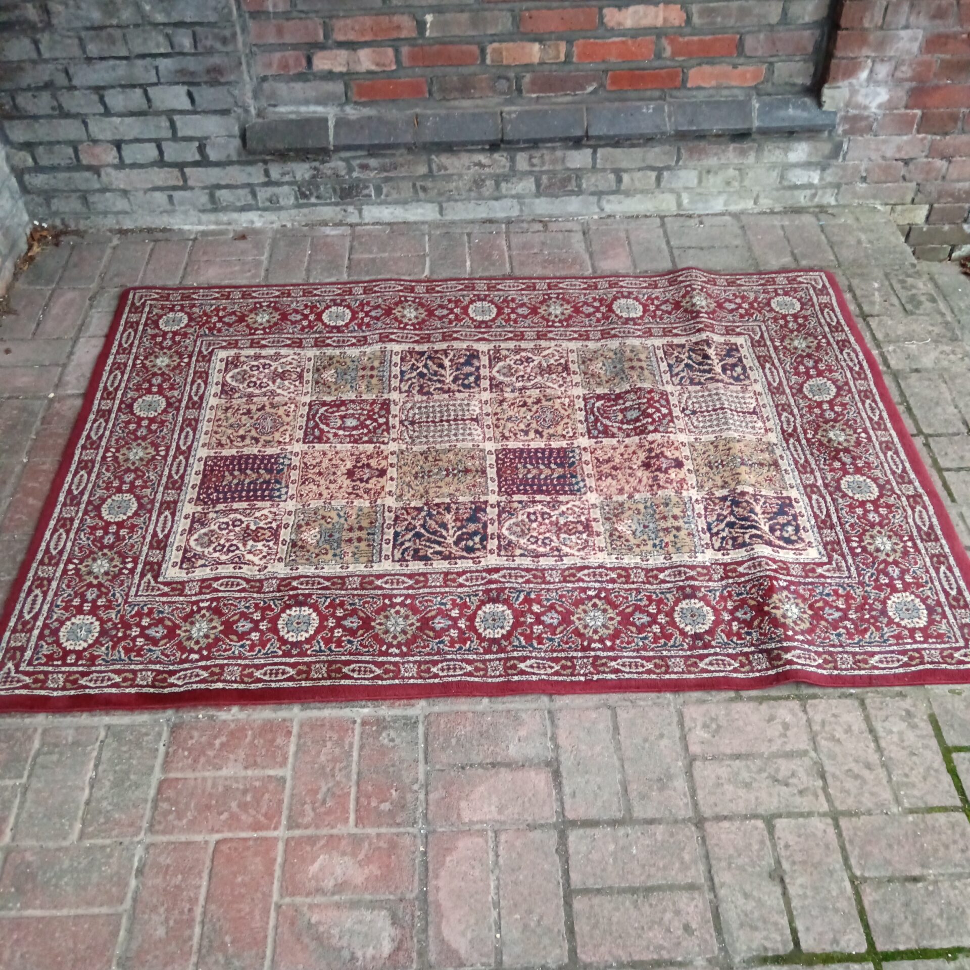 This is a Persian style rug, exhibiting traditional motifs and a rich colour palette. The rug features an intricate pattern, likely hand-knotted or woven, with floral and geometric designs characteristic of oriental rugs. Measuring approximately 6ft x 4ft, it is suitable for use in living rooms, bedrooms, or dining areas, adding a touch of elegance and warmth to any space.