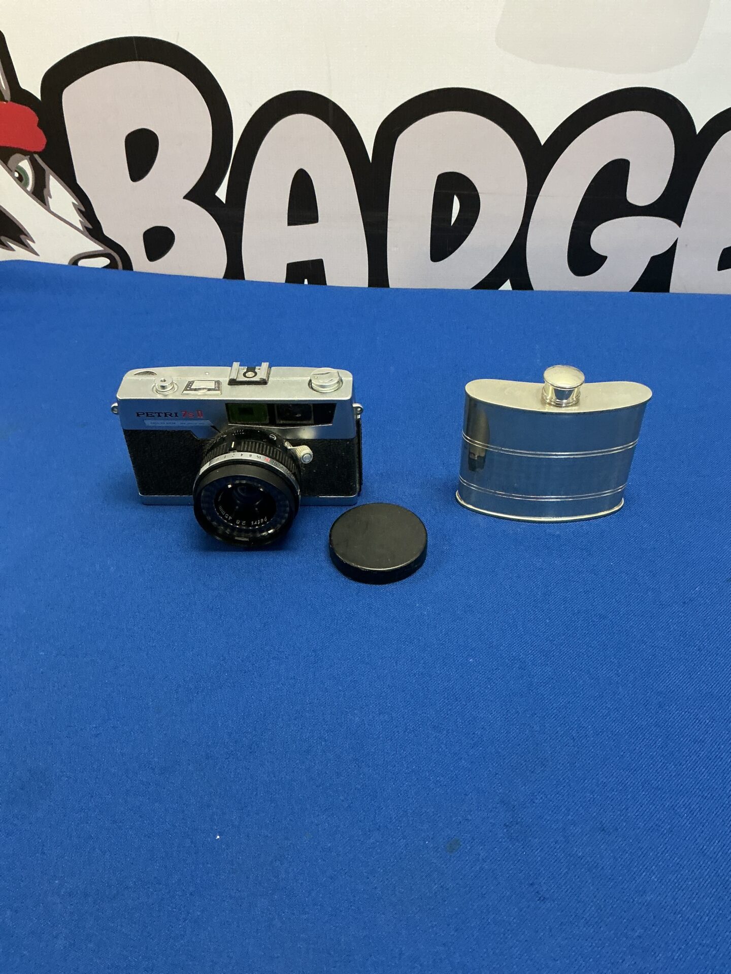 This Petri 7s II presents as a vintage item, and its operational status is unknown. The camera shows signs of age and use, which may include cosmetic wear, scratches, or other imperfections. It is offered as a collectible or for restoration, and may appeal to enthusiasts of classic cameras or those interested in film photography.