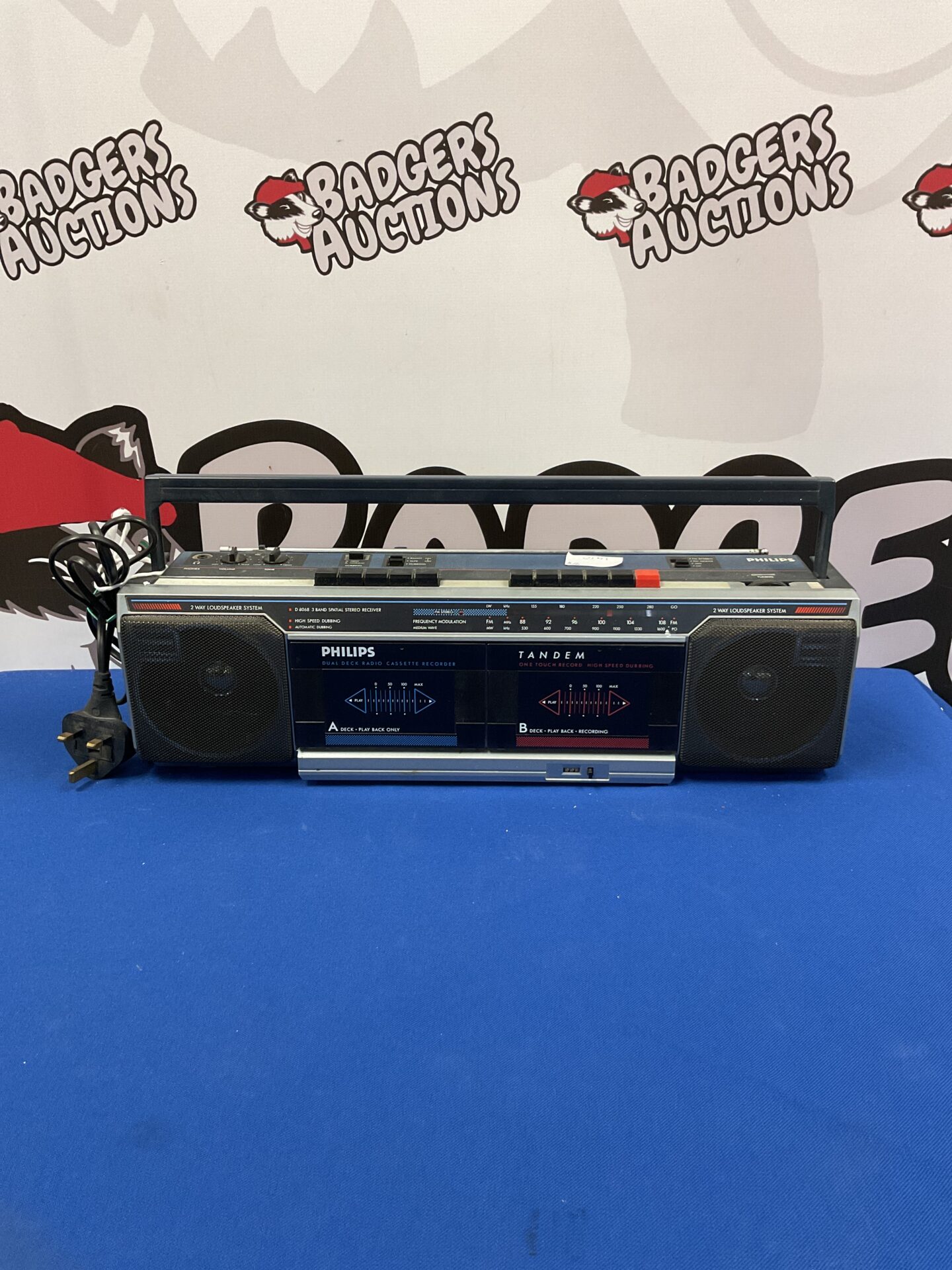 This vintage Philips D8068/05 spatial stereo receiver with 2-way loudspeakers offers a nostalgic glimpse into 1980s audio technology. Featuring spatial sound capabilities and classic styling, this unit is ideal for collectors or those seeking a retro audio experience. It presents as seen in the images and is ready for display or restoration.
