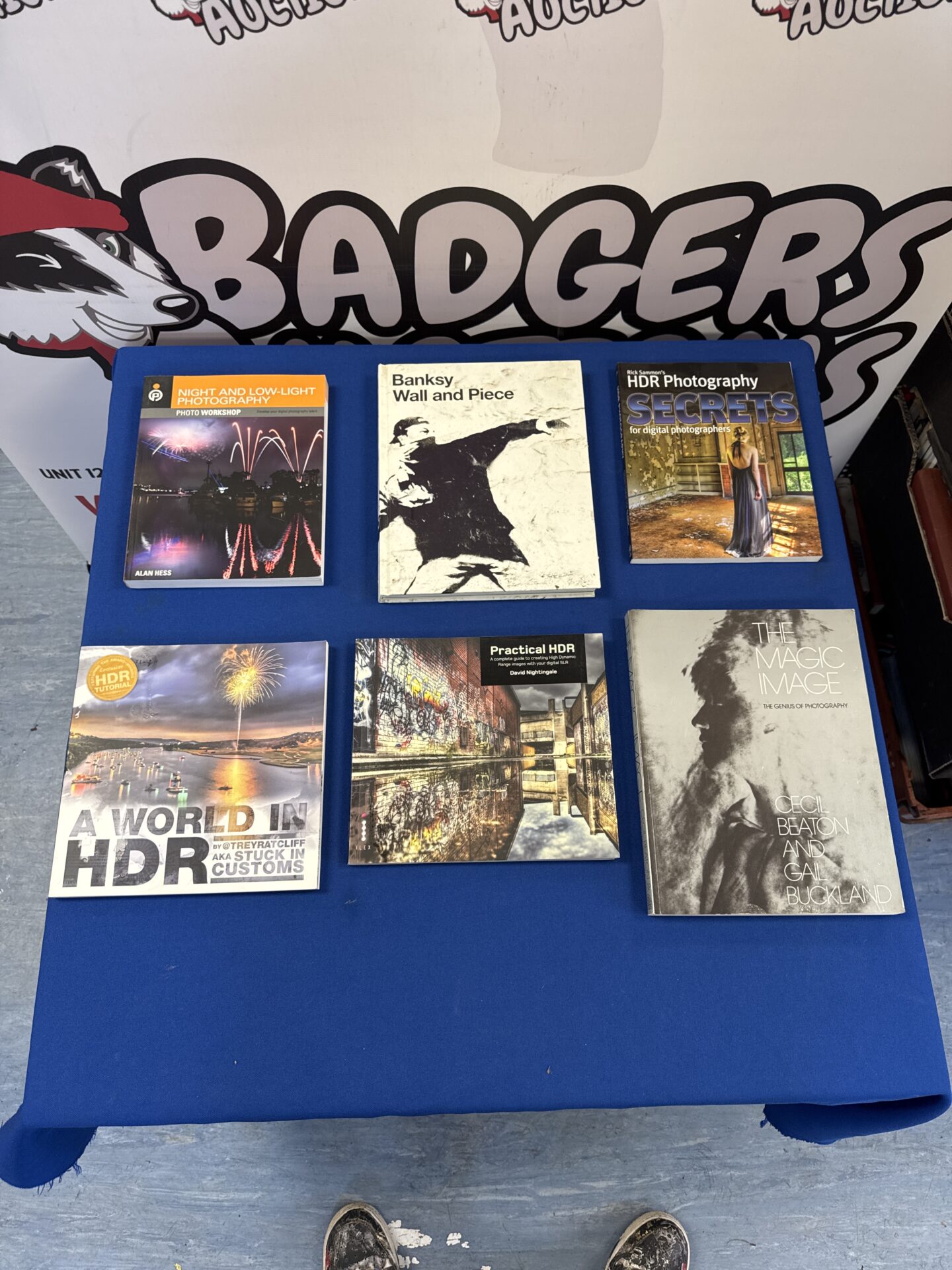 This lot comprises five photography books, including a copy of Banksy’s “Wall & Piece”. The collection covers a range of photographic techniques and styles, with a focus on HDR (High Dynamic Range) photography. These books offer a blend of artistic inspiration and practical guidance for photographers of all levels, from beginners to enthusiasts.