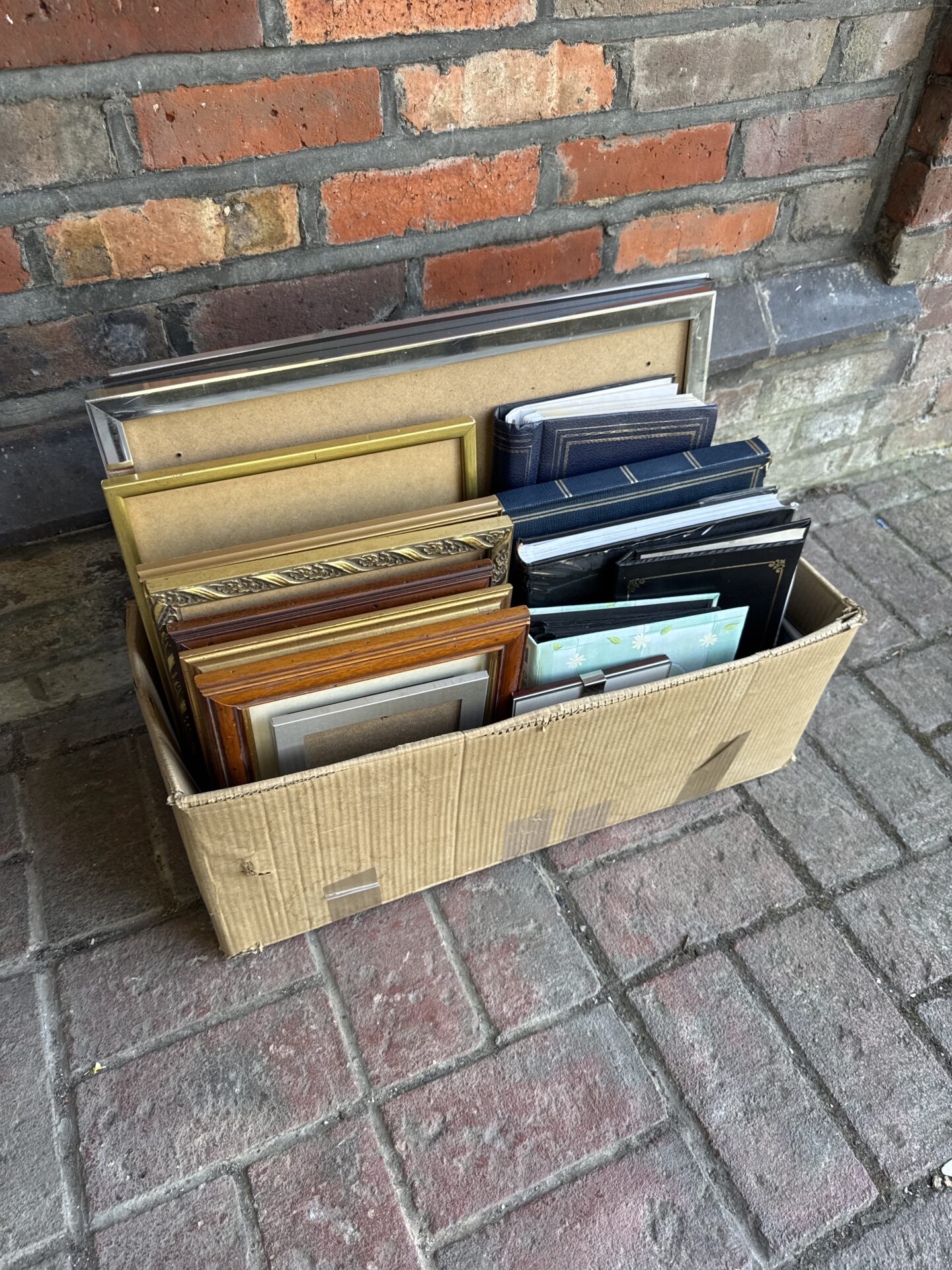 This lot comprises a collection of assorted picture frames and photo albums, ideal for preserving cherished memories. The frames vary in size and style, suggesting a collection built up over time. The inclusion of photo albums indicates a focus on documenting and displaying family history or personal collections.
