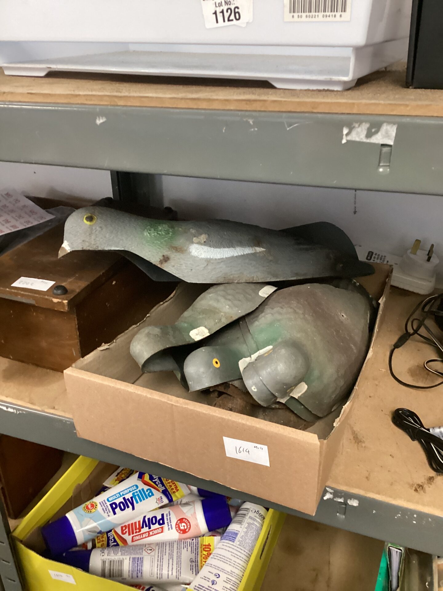 This lot consists of several plastic pigeon decoy bodies. These appear to be designed for use in hunting or training, offering a realistic shape for attracting other birds. The bodies are made of durable plastic, suggesting they were intended for outdoor use and repeated handling.