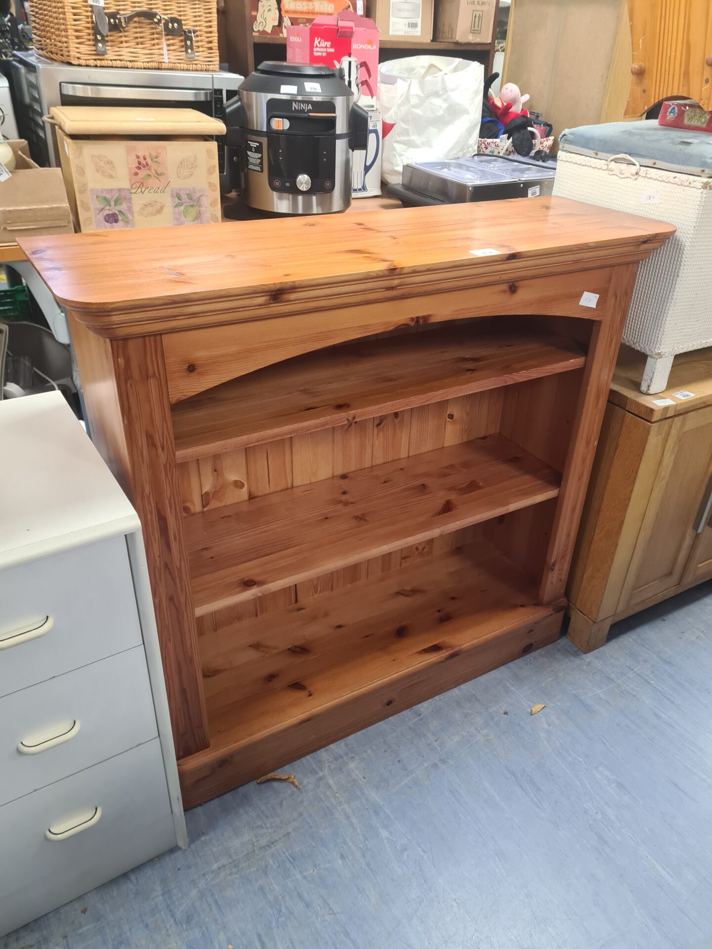 This bookcase is in good used condition, exhibiting the natural character of aged pine. It may show minor signs of wear consistent with age and use, such as small imperfections or slight variations in the wood grain. These characteristics add to its unique appeal and authenticity, making it a desirable piece for collectors of rustic furniture or those seeking a charming, vintage aesthetic.
